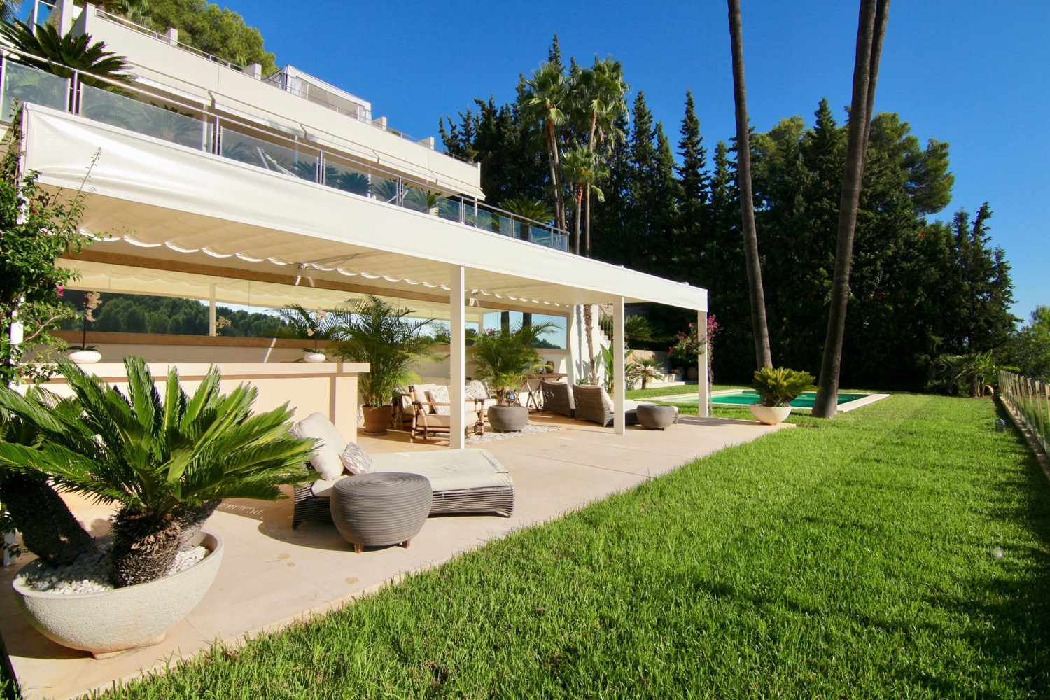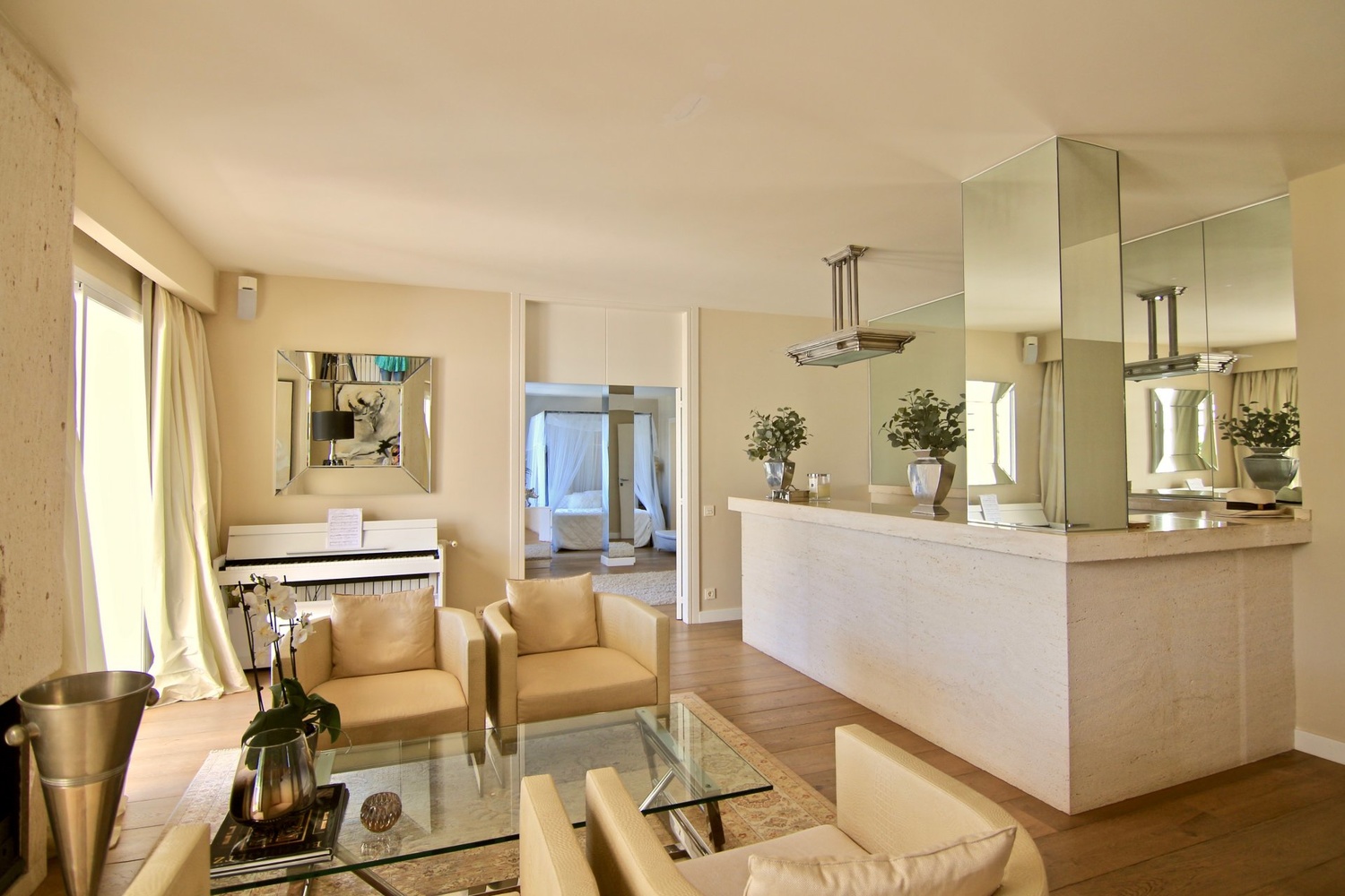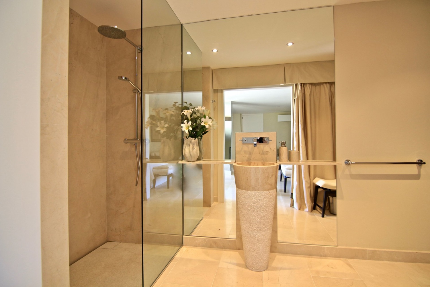 Mature garden with huge palm trees, ample salt swimming pool with adjoining pool bar, summer kitchen with barbecue area, private squash hall and fitness room.