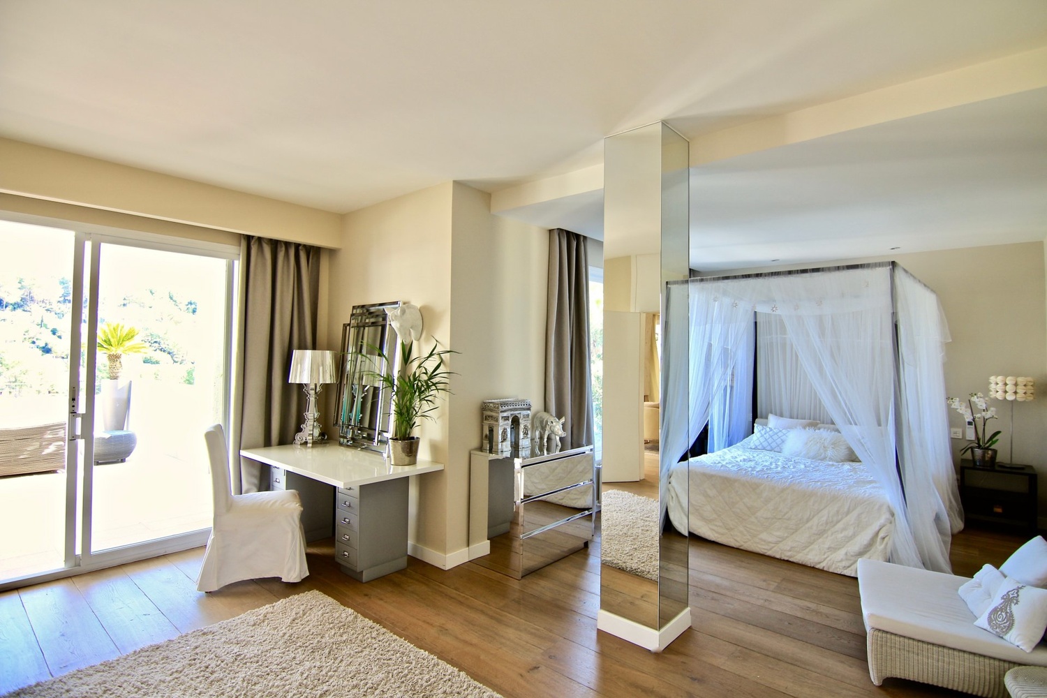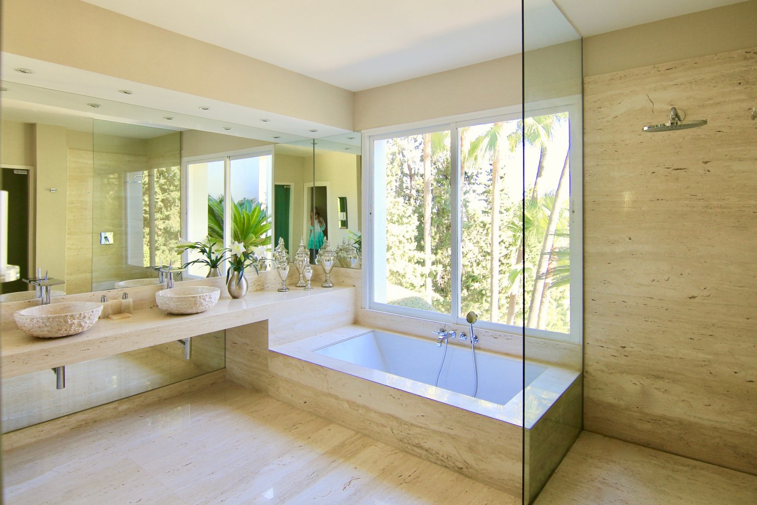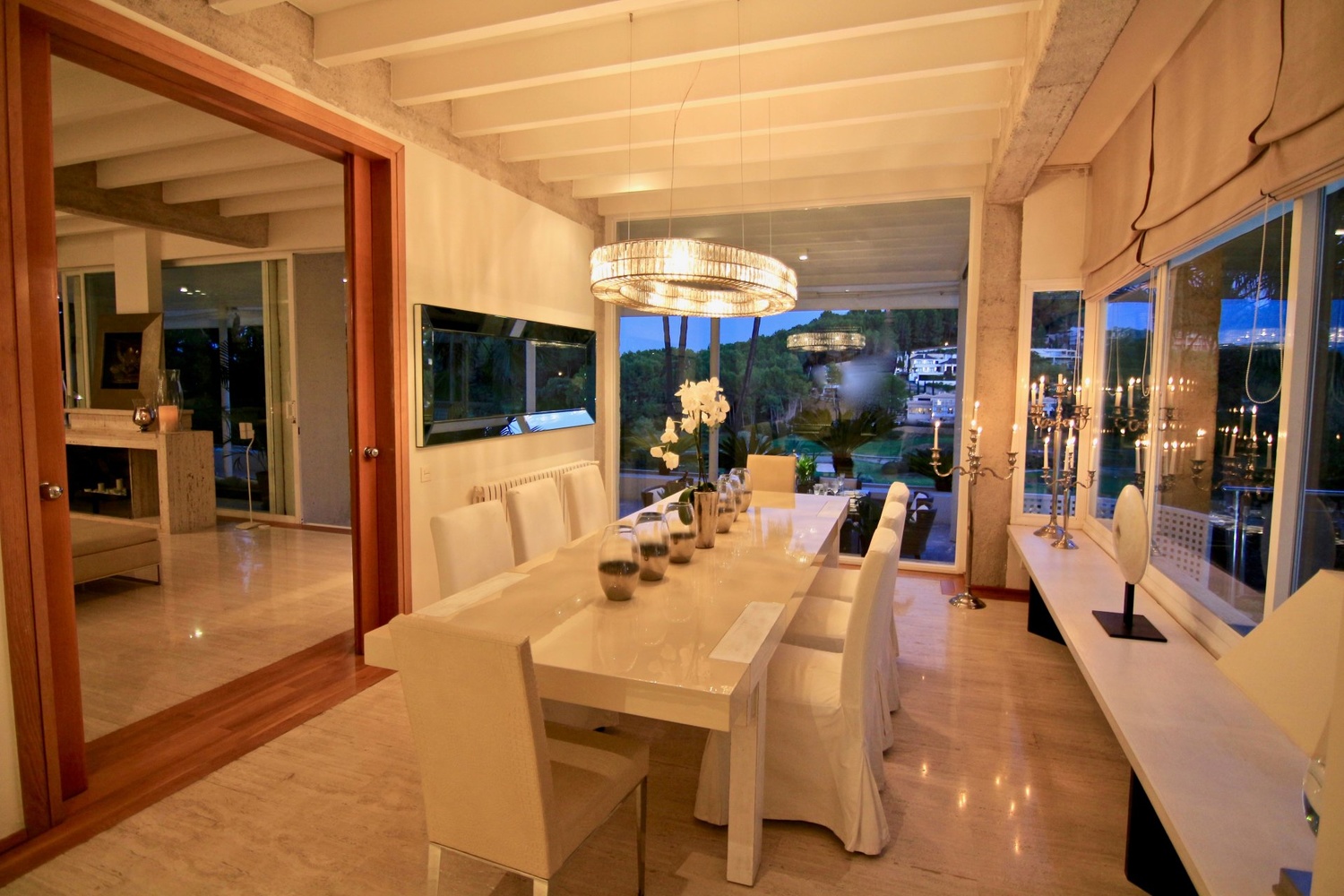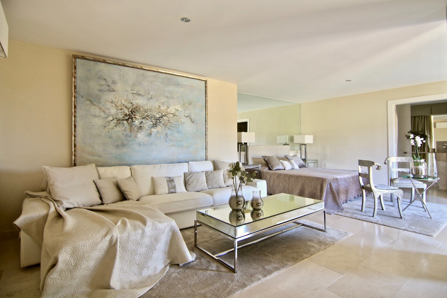 Mature garden with huge palm trees, ample salt swimming pool with adjoining pool bar, summer kitchen with barbecue area, private squash hall and fitness room.