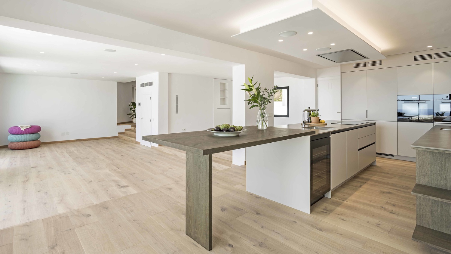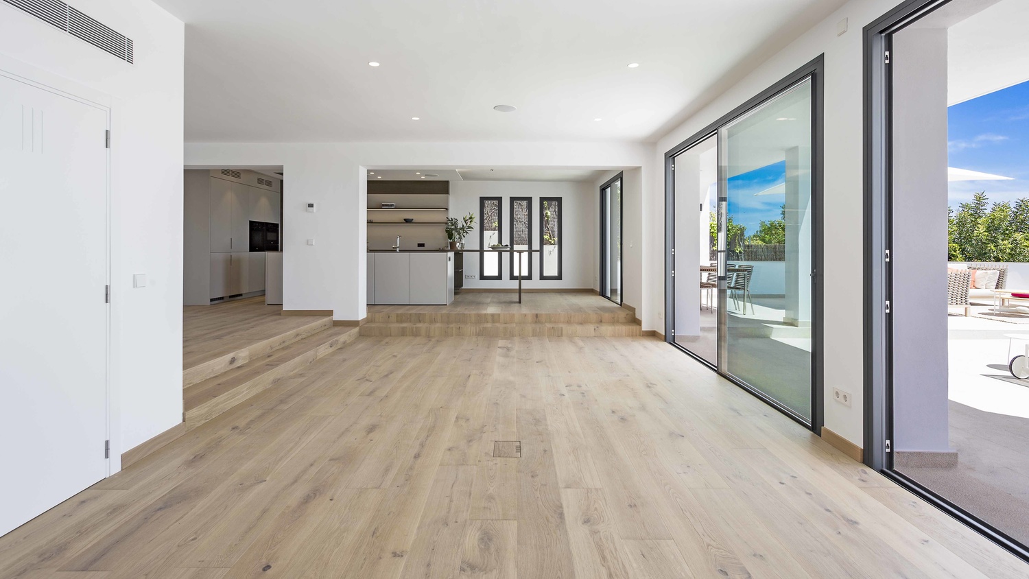 An easy driveway leads to the back of the villa, from where you have an additional entrance directly into the laundry room and the kitchen. Carport for two cars and space for another two vehicles. Beautiful open and covered terraces on both sides of the villa, easy-care garden.