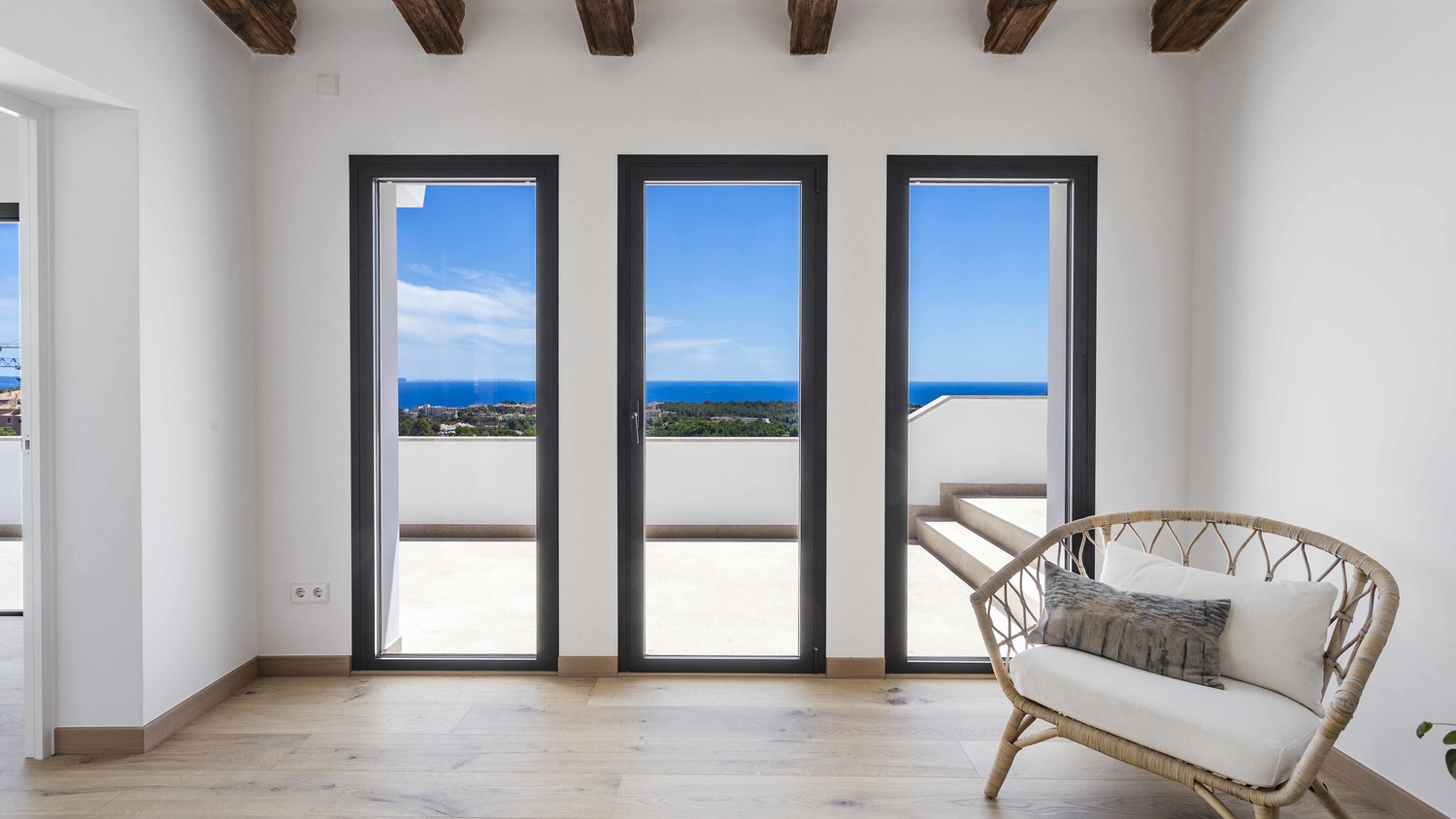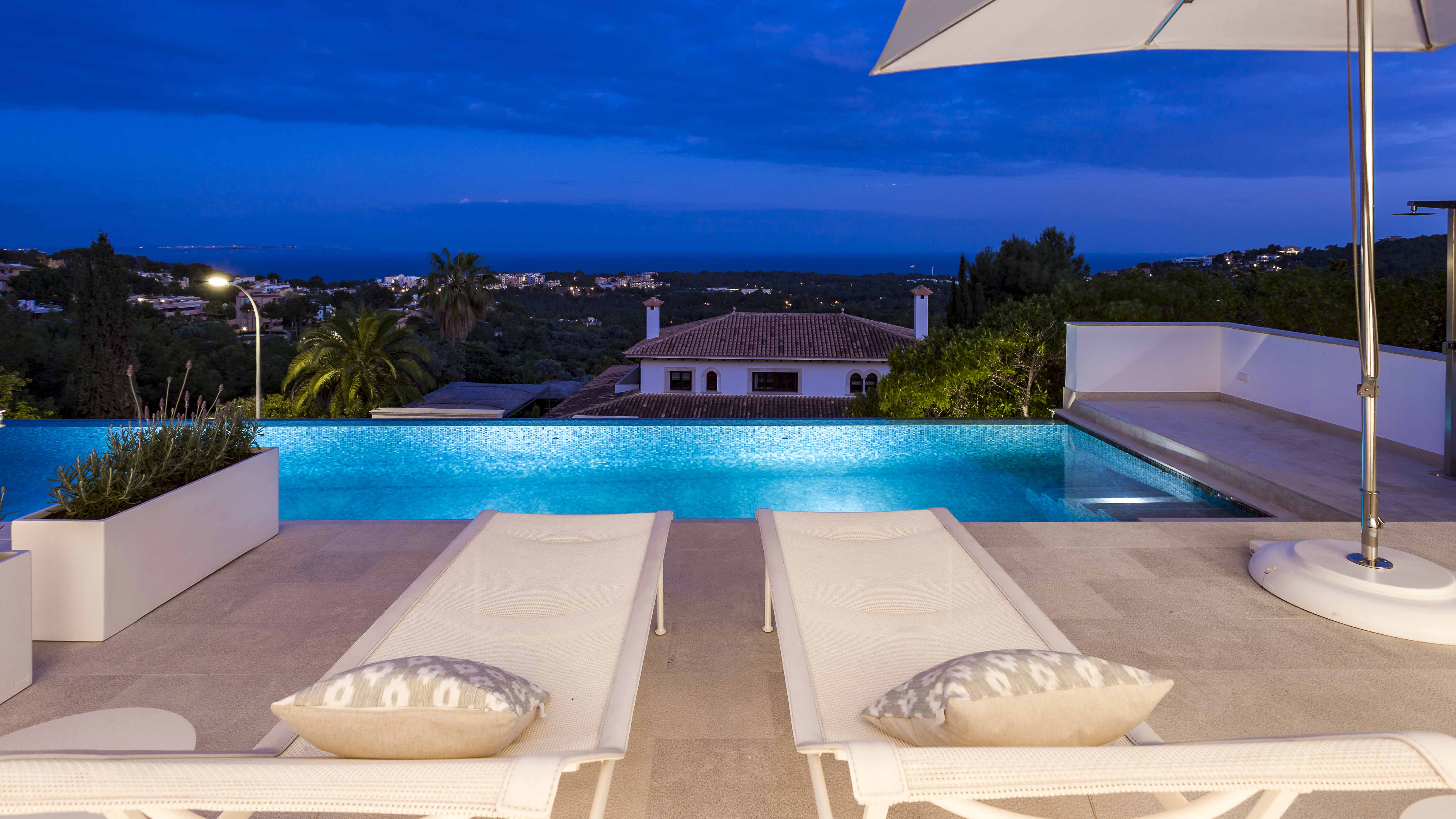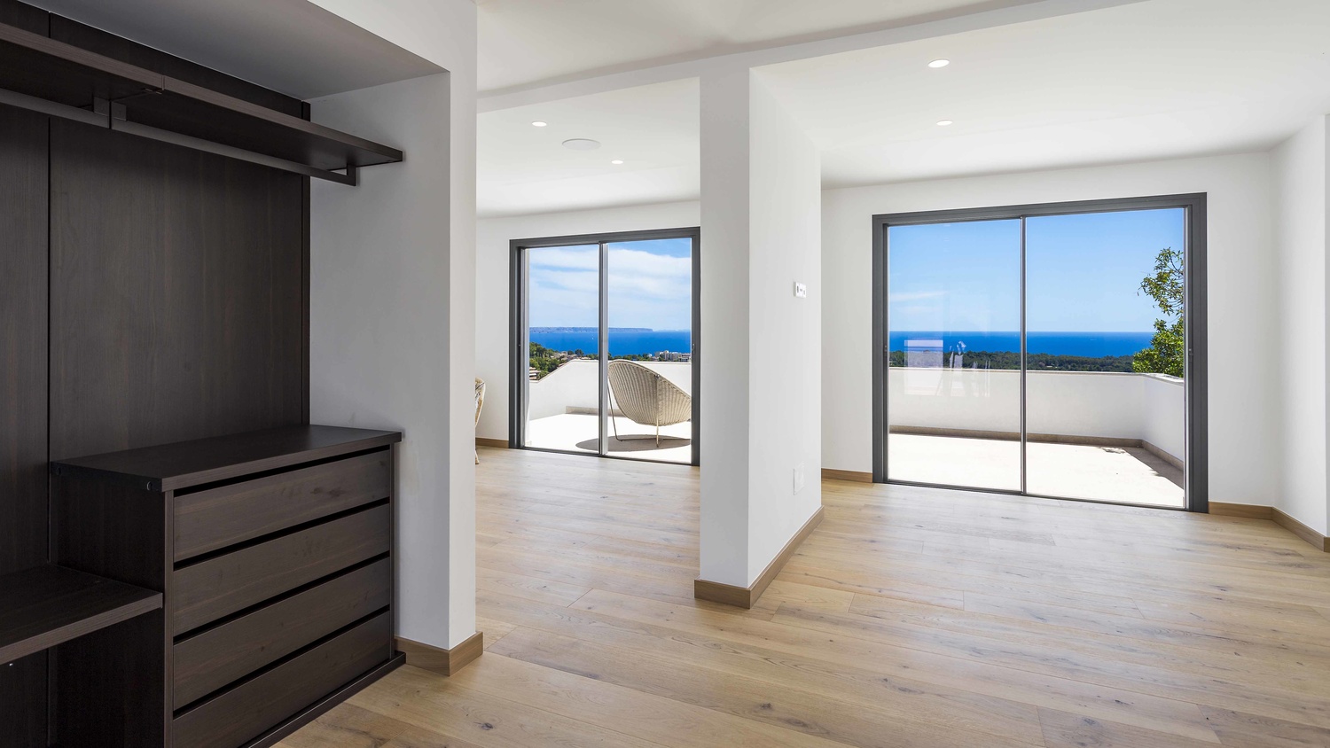 First floor: separate office area, TV / cinema room, two bedrooms with en-suite bathroom and access to a beautiful terrace from which you can enjoy a breathtaking view over the Golf of Bendinat and the Bay of Palma to Magaluf, two more bedrooms and another bathroom.