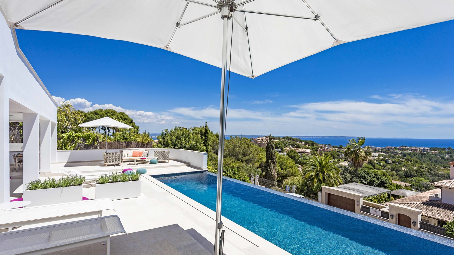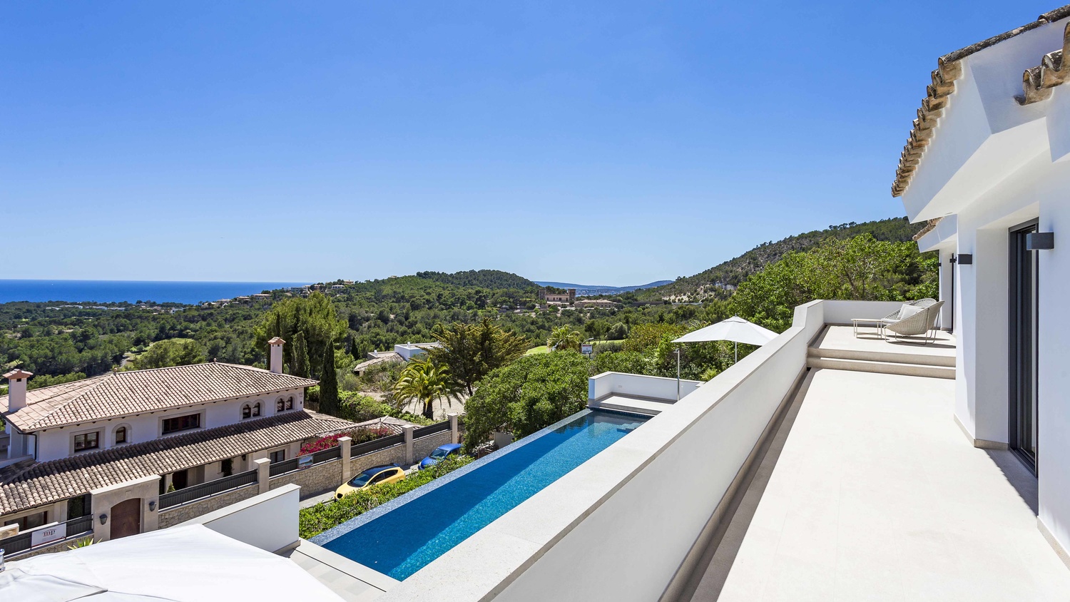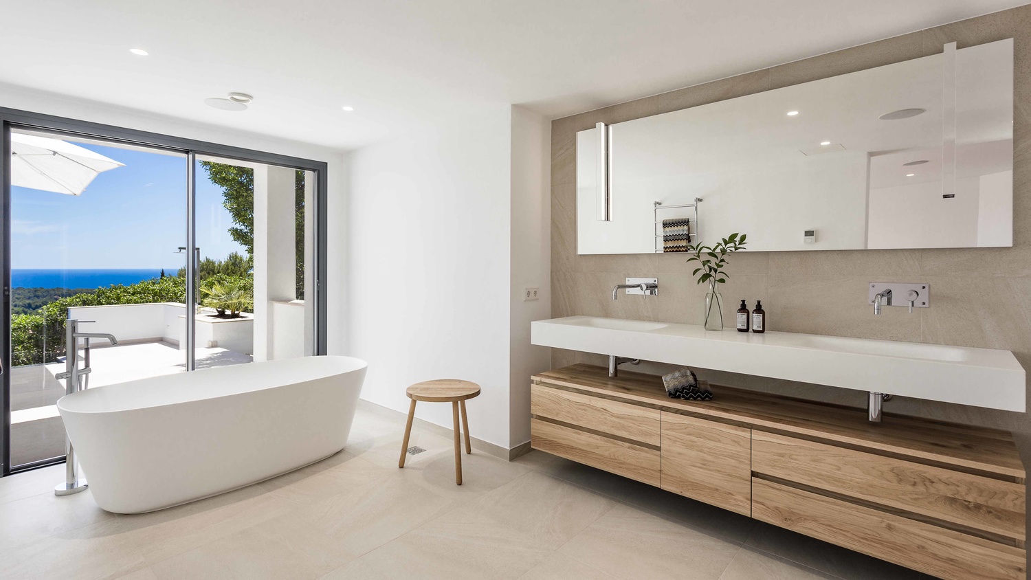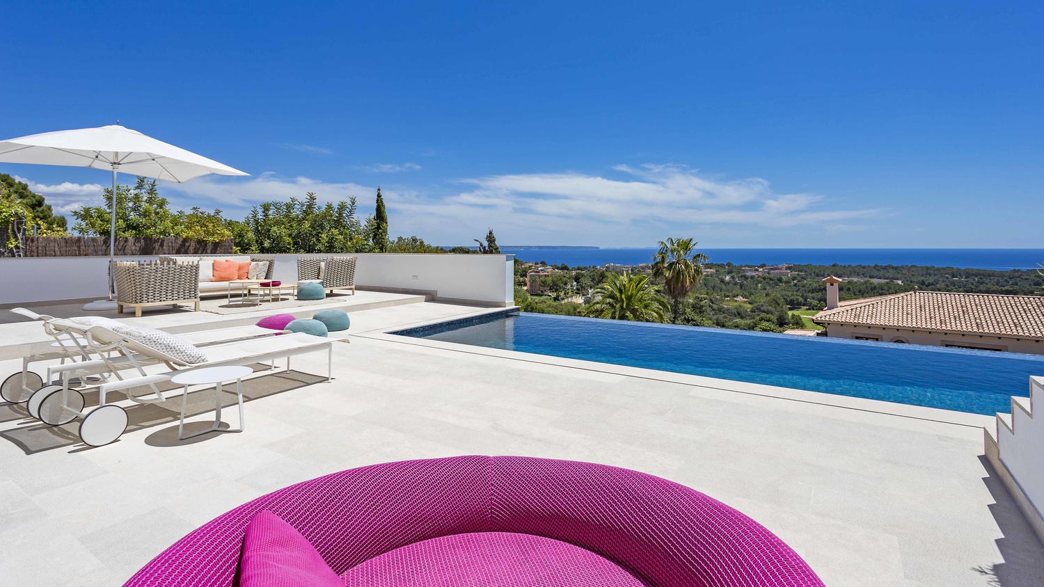 First floor: separate office area, TV / cinema room, two bedrooms with en-suite bathroom and access to a beautiful terrace from which you can enjoy a breathtaking view over the Golf of Bendinat and the Bay of Palma to Magaluf, two more bedrooms and another bathroom.