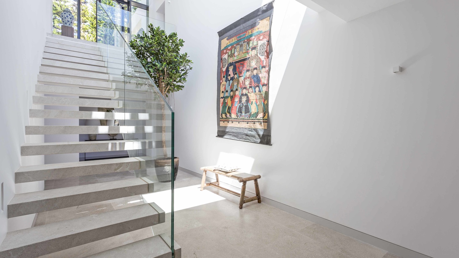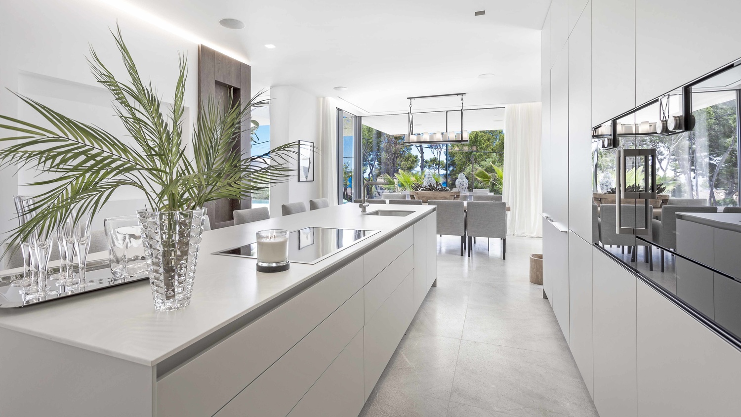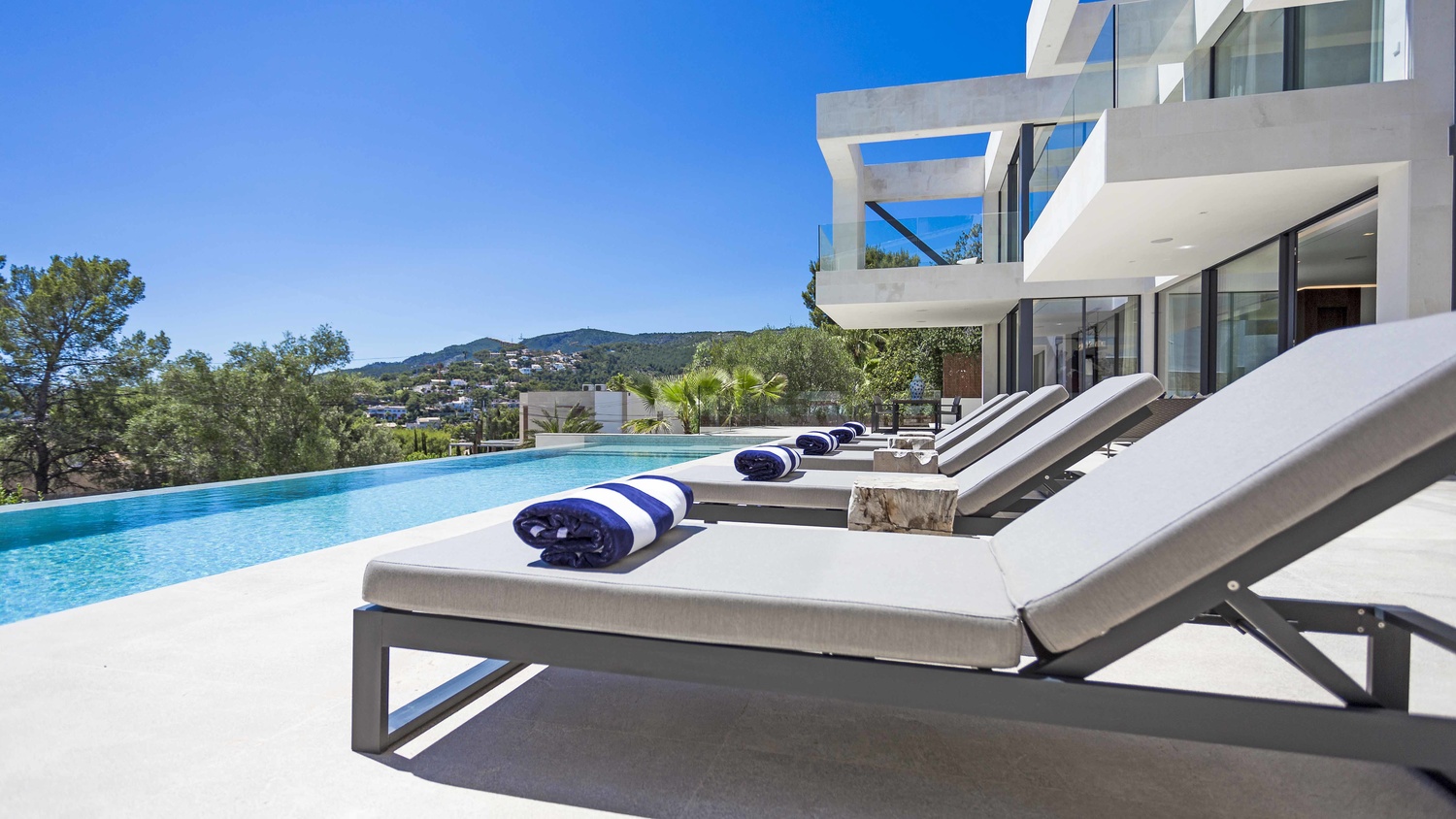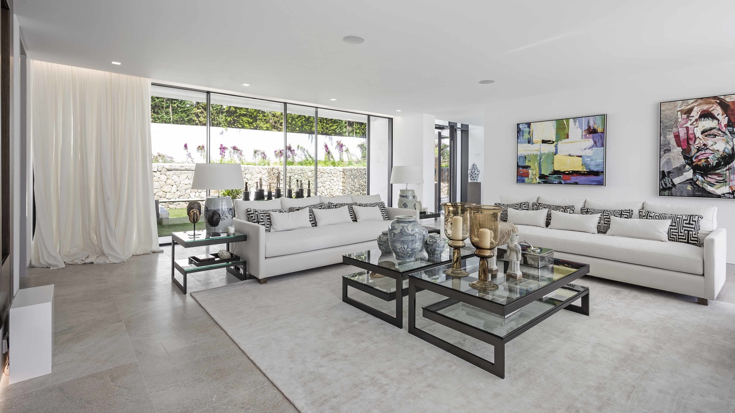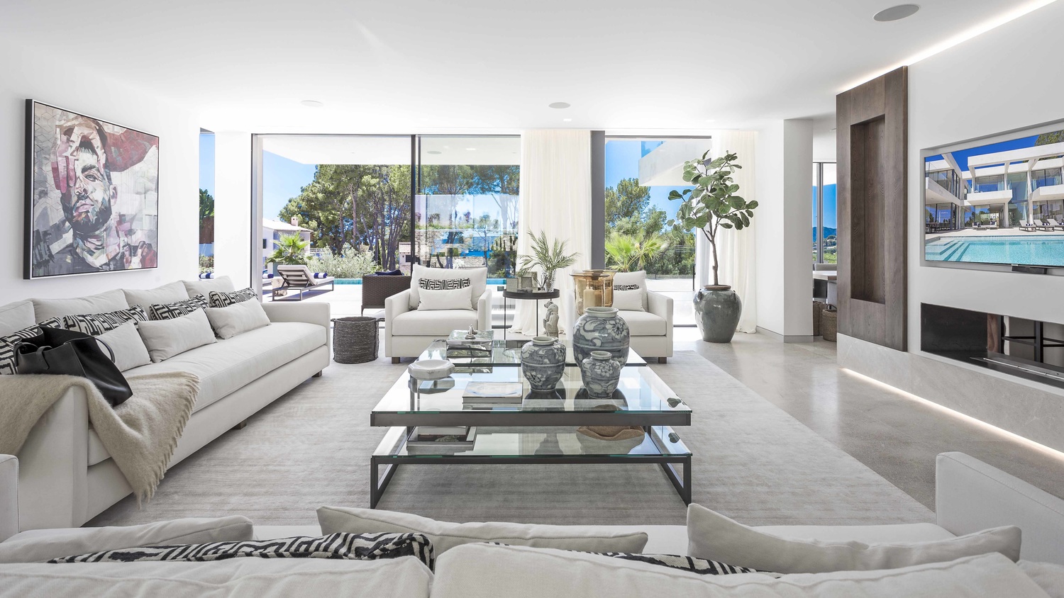 The villa was built and fitted with the most exquisite materials and it is listed at 4,950,000 including 250,000 worth of furniture and artwork. The property is located in a quiet area and hence the perfect family home but also suitable as a holiday home, being very close to the village of Portals and its luxury yacht harbour, both with great accessibility to the shops, bars and restaurants of the area.