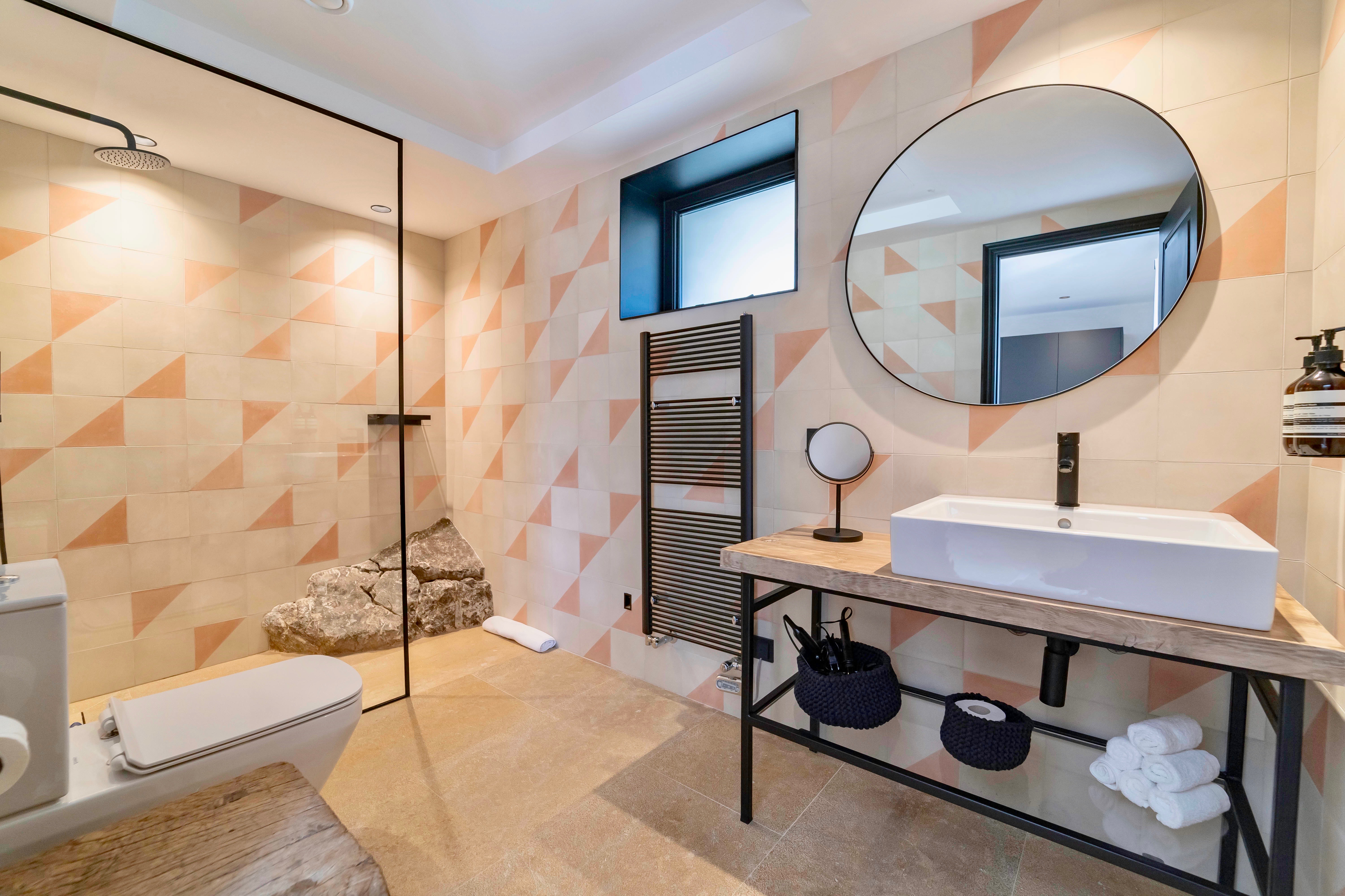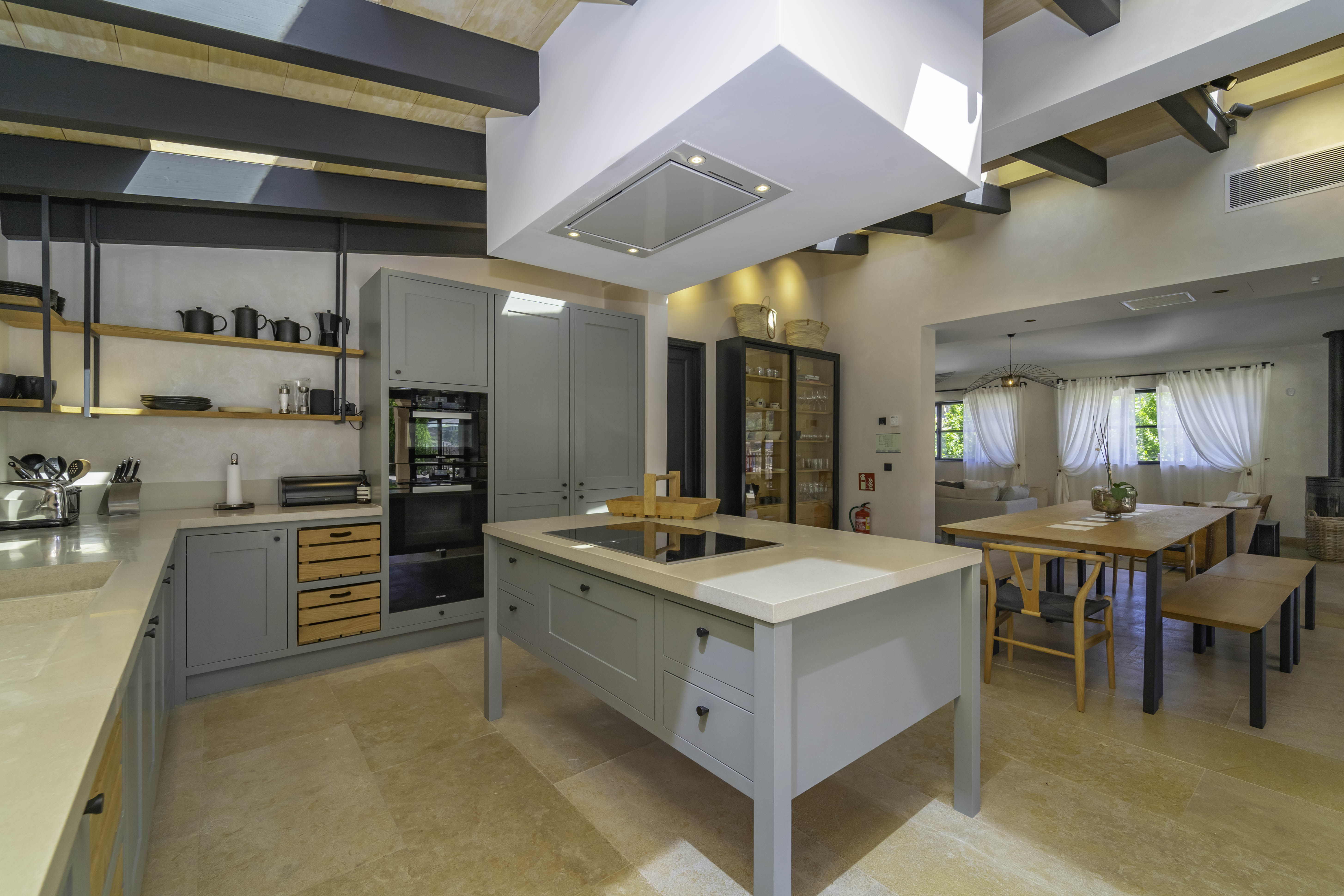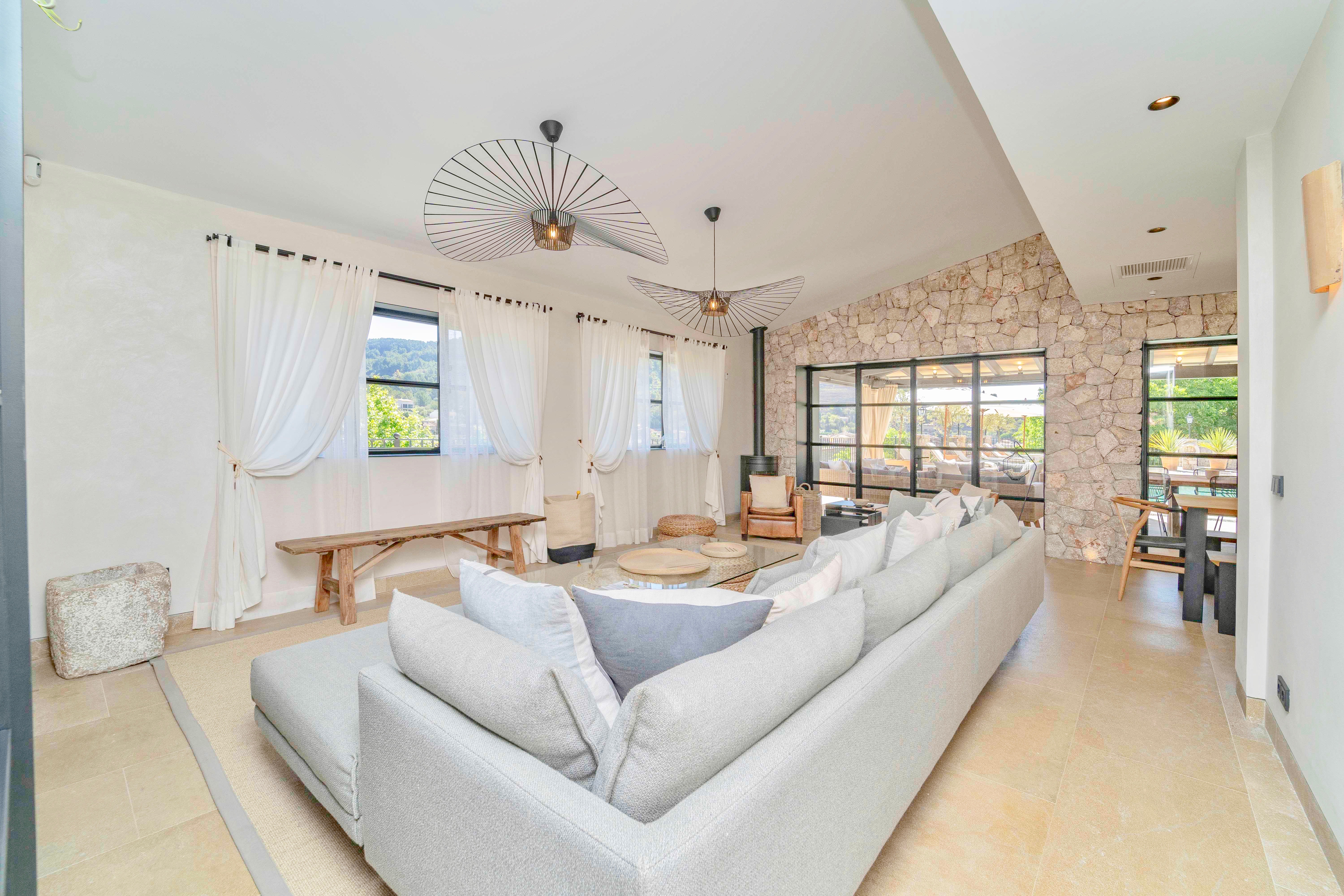 The villa is presented in great conditions. It was completely renovated and extended in 2016/2017 with an excellent design combining natural building materials such as stone floors and wood paneling and beautiful hydraulic tiles in the bathrooms giving this modern style villa a warm and welcoming feeling. The entire house is light-flooded and is equipped with the latest technology including underfloor heating powered by an electric pump and built-in air conditioning throughout.