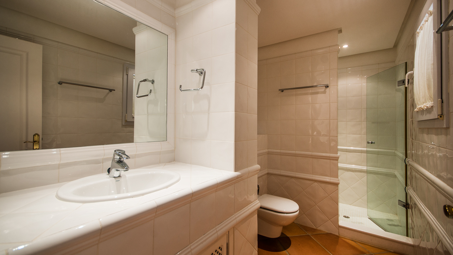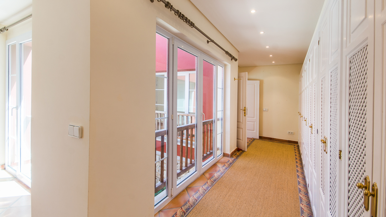 First floor: hallway with access to two guest bedrooms each with bathrooms en suite and one master suite with extra-spacious dressing area, bathroom with jacuzzi, shower and separate toilet.
