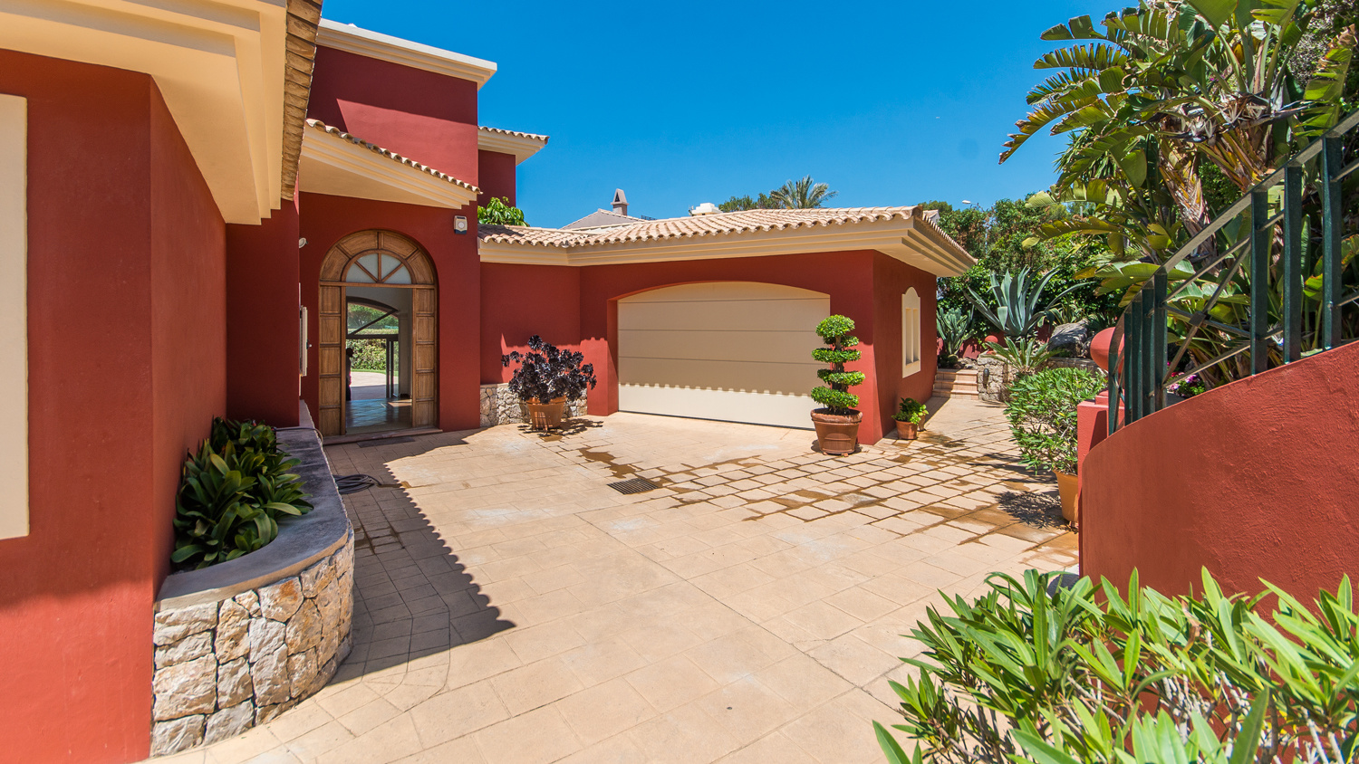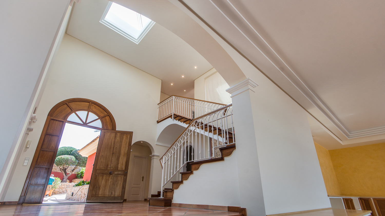 Ground floor: entrance hall with double high ceilings and open staircase and views to two indoor patios, large open plan living and dining area with open fire place and exceptionally high ceilings, laundry area, garage for two big cars, guest apartment with independent entrance.