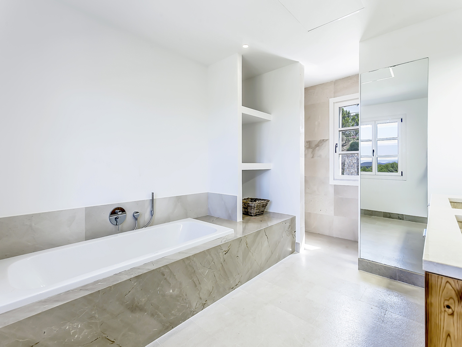 Features include gas central heating, reversible air conditioning, walk-in wardrobes and natural stone floors from Binissalem. High-quality brands such as Bulthaup, Phillip Starck and Grohe can be found in the kitchen and bathrooms. The property is beautifully embedded in nature and offers a lot of peace and privacy. On the other hand, due to the central location in the southwest of Mallorca, you can benefit from very good connections to several marinas, golf courses and numerous beaches - the beautiful bay of Cap Falcó is only a few minutes away.