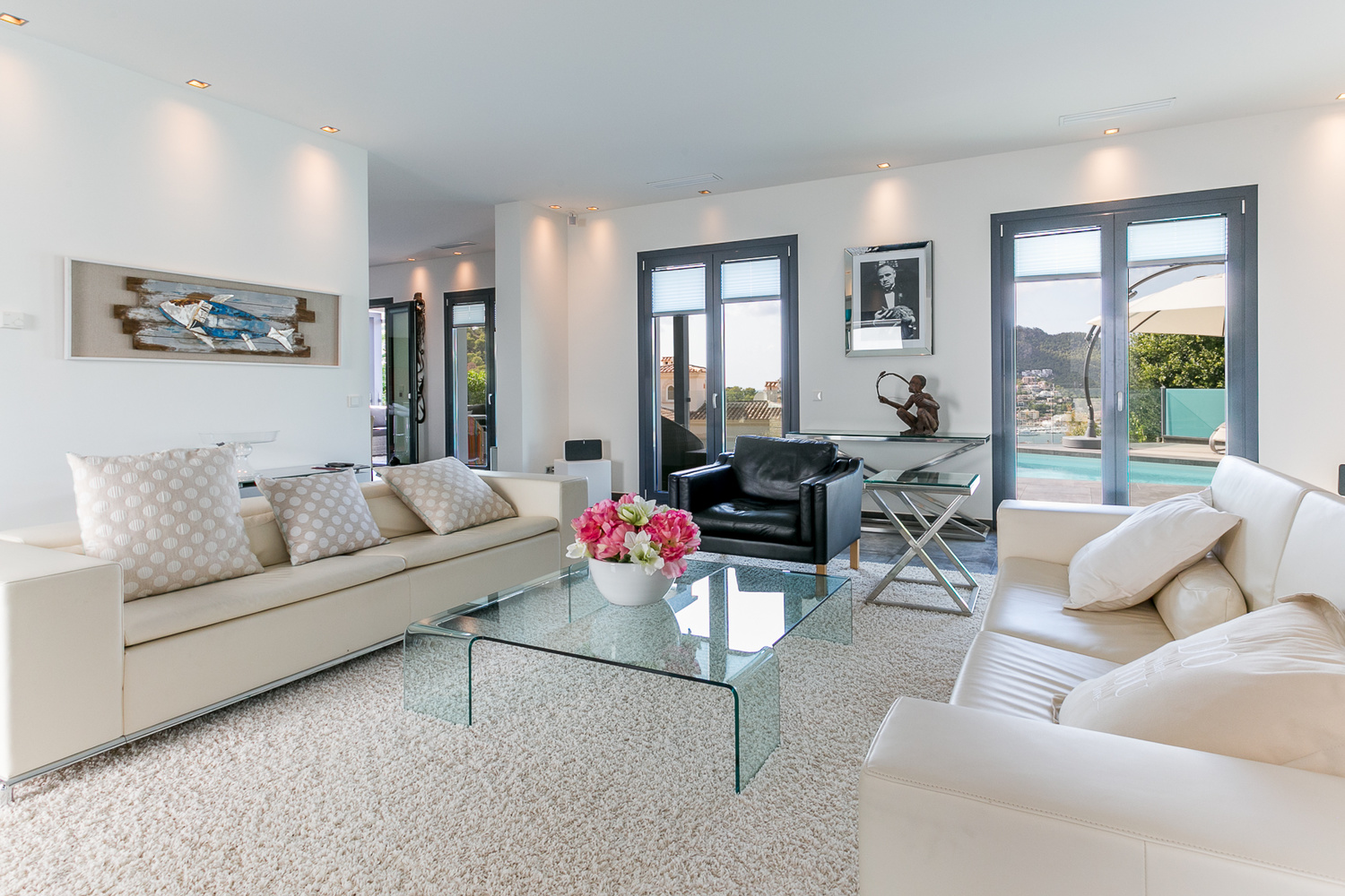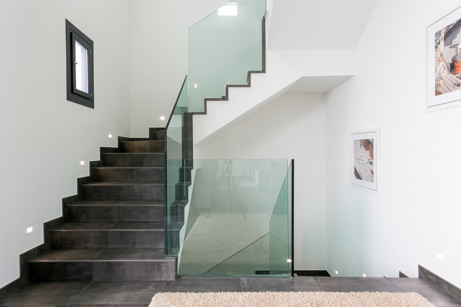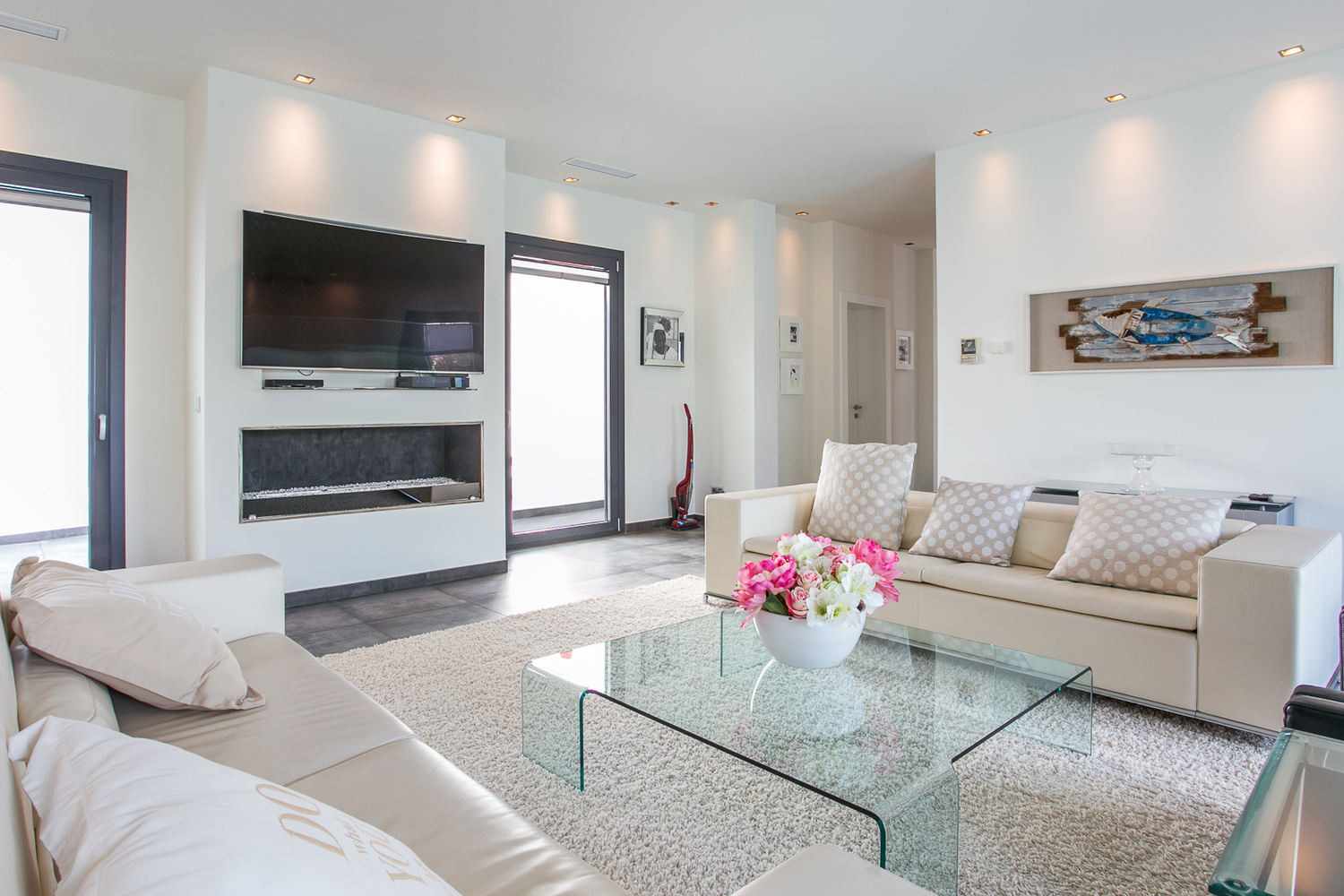 The whole property is equipped with underfloor heating and air condition. All around the house there are open as well as covered terrace, a BBQ area and a splendid pool with sea view.