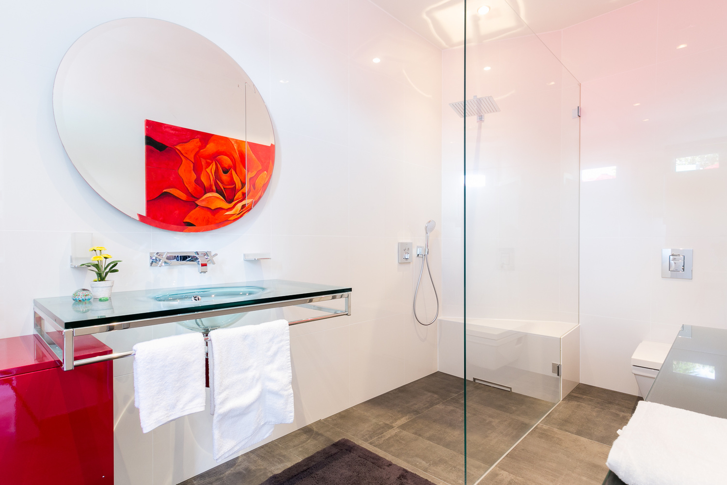 On the ground floor you will find a bedroom with a bathroom en-suite, on the top floor there are 3 further bedrooms, also each with a bathroom en-suite.