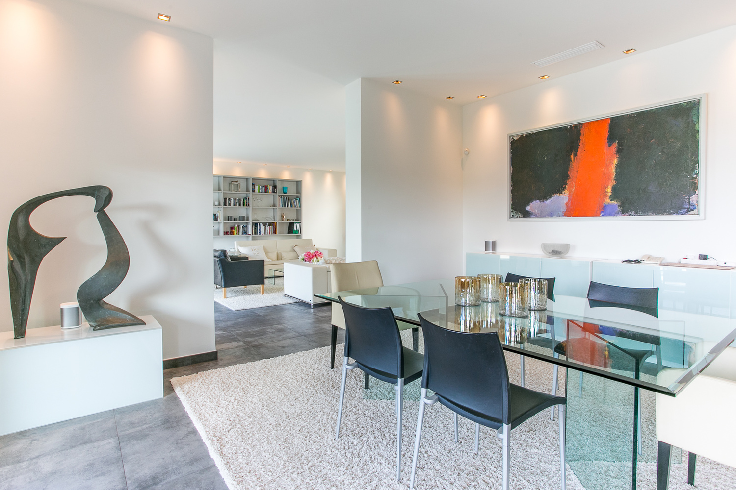 The ample living and dining are with an open fireplace offers plenty of space for the whole family. The spacious open kitchen is a real eye-catcher.