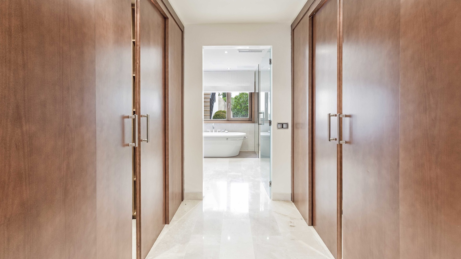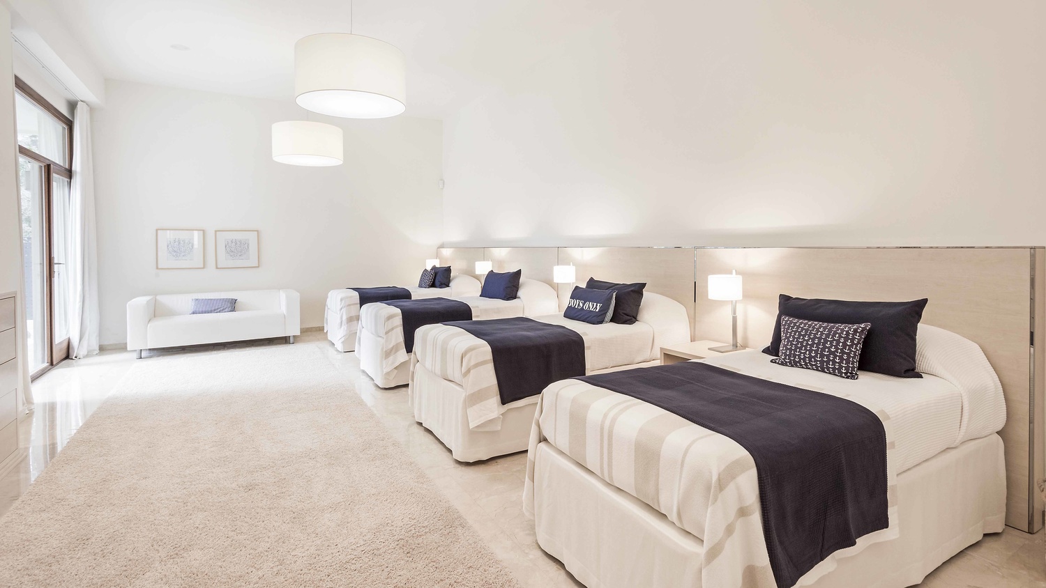 The lower floors offer; an impressive master bedroom with beautifully designed en-suite bathroom and capacious dressing-room, Furtheron the villa contains four guest bedrooms with three en suite bathrooms , wine celler , Lounge area with library, and a laundry room.