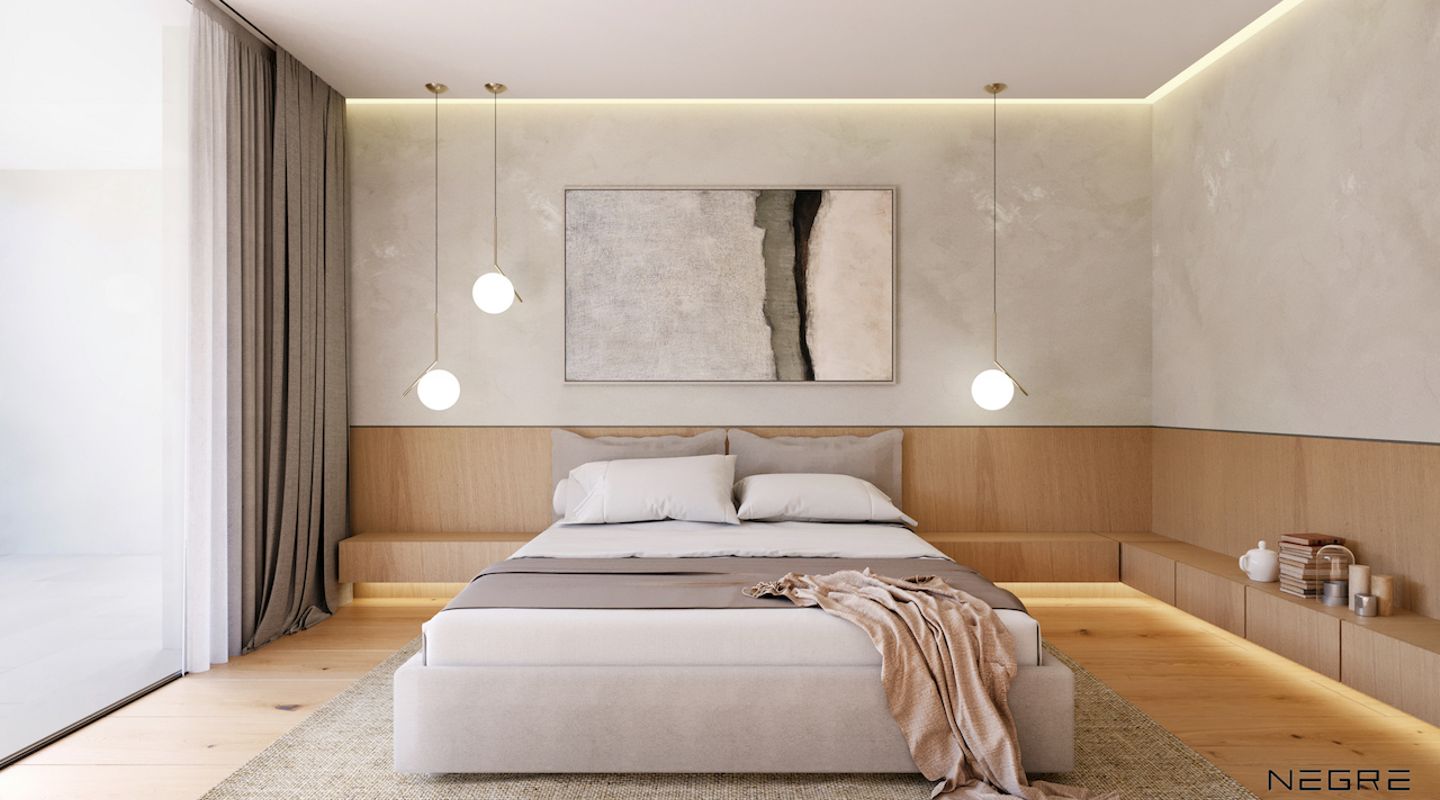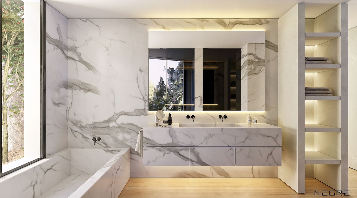 Basement: Master bedroom with dressing room, spacious bathroom en suite with a luxurious bathtub, three further bedrooms, each with en suite bathroom. All bedrooms have access to a covered terrace with various areas to relax and a beautiful view over the pool and the sea.