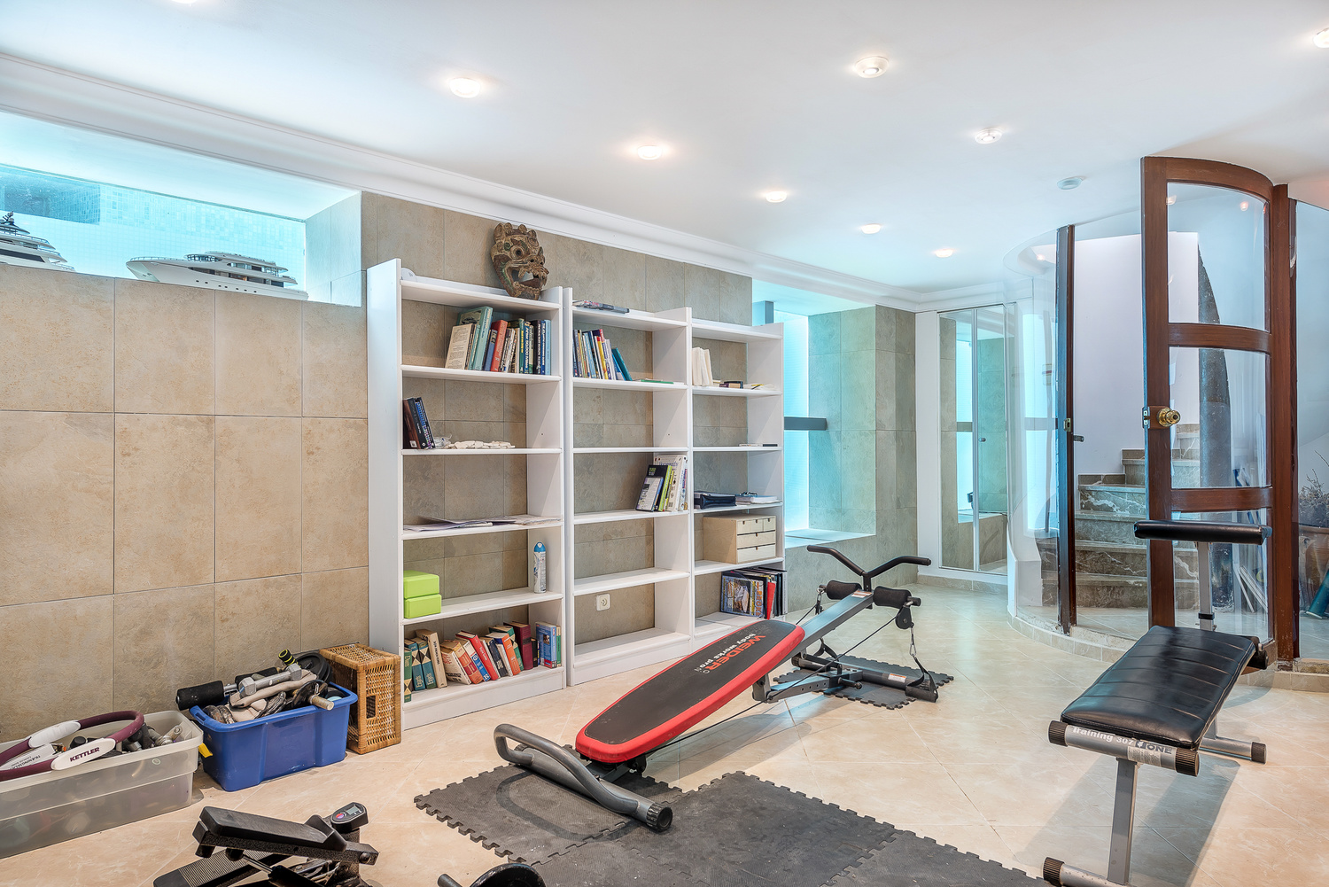 On the basement of the villa, there is a gym area, as well as the possibility to install a sauna. Particularly nice around here is the fact, that the basement has day-light, as the same comes in from two big underwater windows in the pool and thus makes the room bright and friendly.