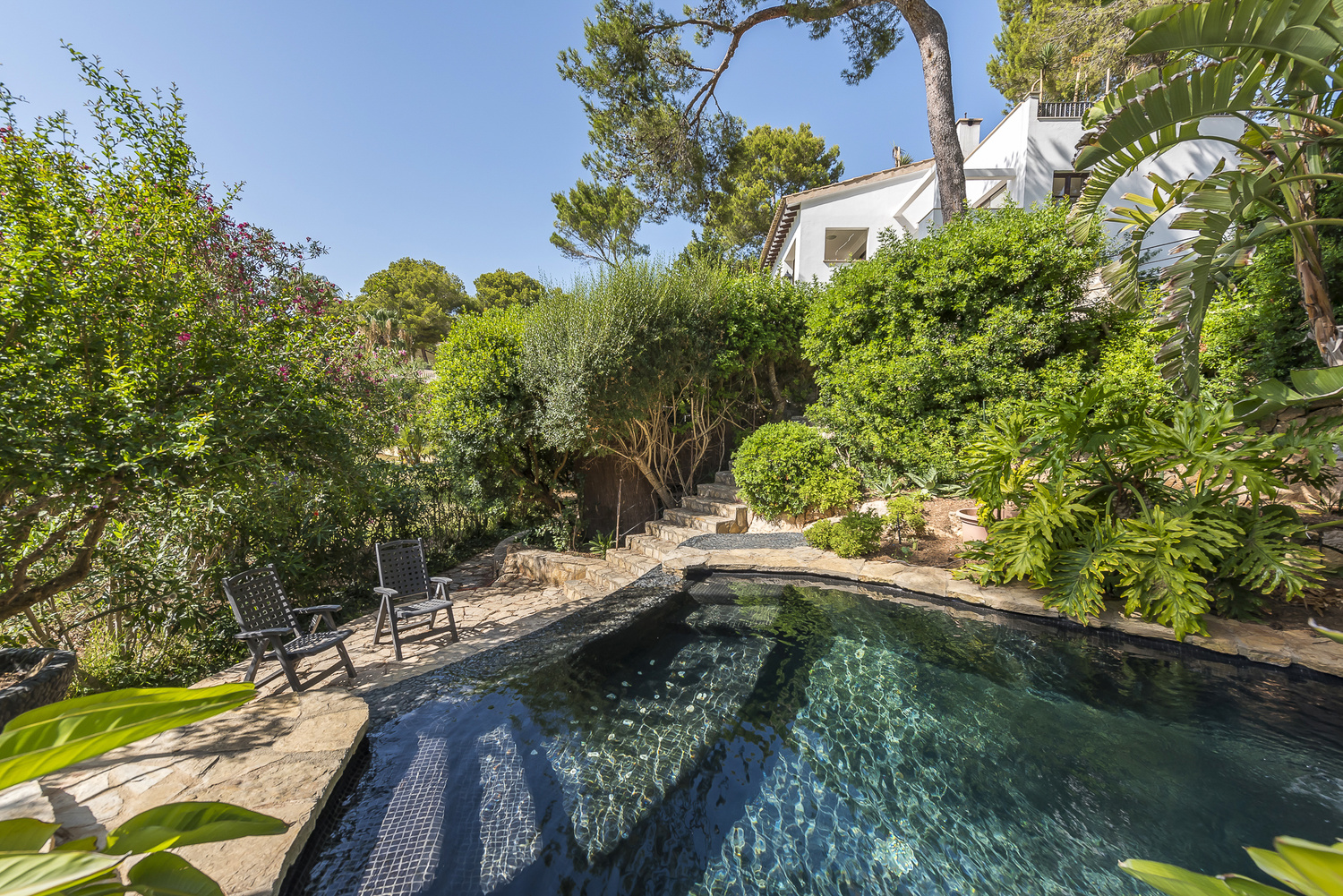 The net living area is distributed over 3 floors, plus a roof terrace as well as different covered and uncovered terraces in the large landscaped garden. The villa was originally designed and built by the famous Mallorcan architect José Ferragut Pou and completely reconstructed in 1995. Since then the owner has been renovating and modernizing it every 5 years so that the property is in a very well-maintained condition. The last renovation took place in 2018.