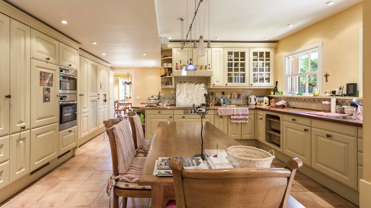 Ground floor: Entrance hall with guest bathroom, living room with fireplace, dining room, large American kitchen with direct access to the utility room with washing machine / dryer, ironing room and WC. Large covered terrace.