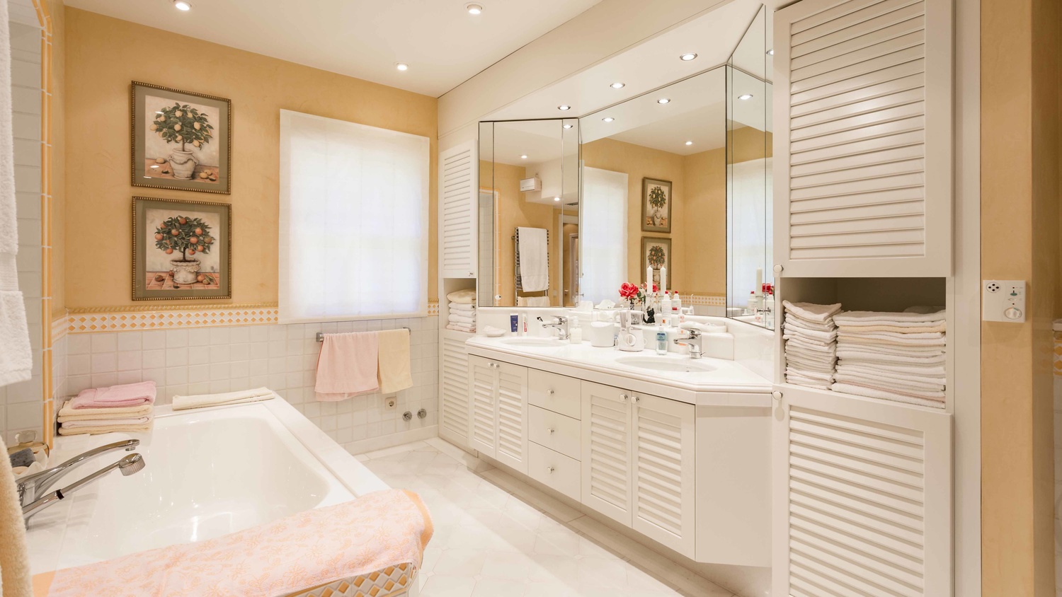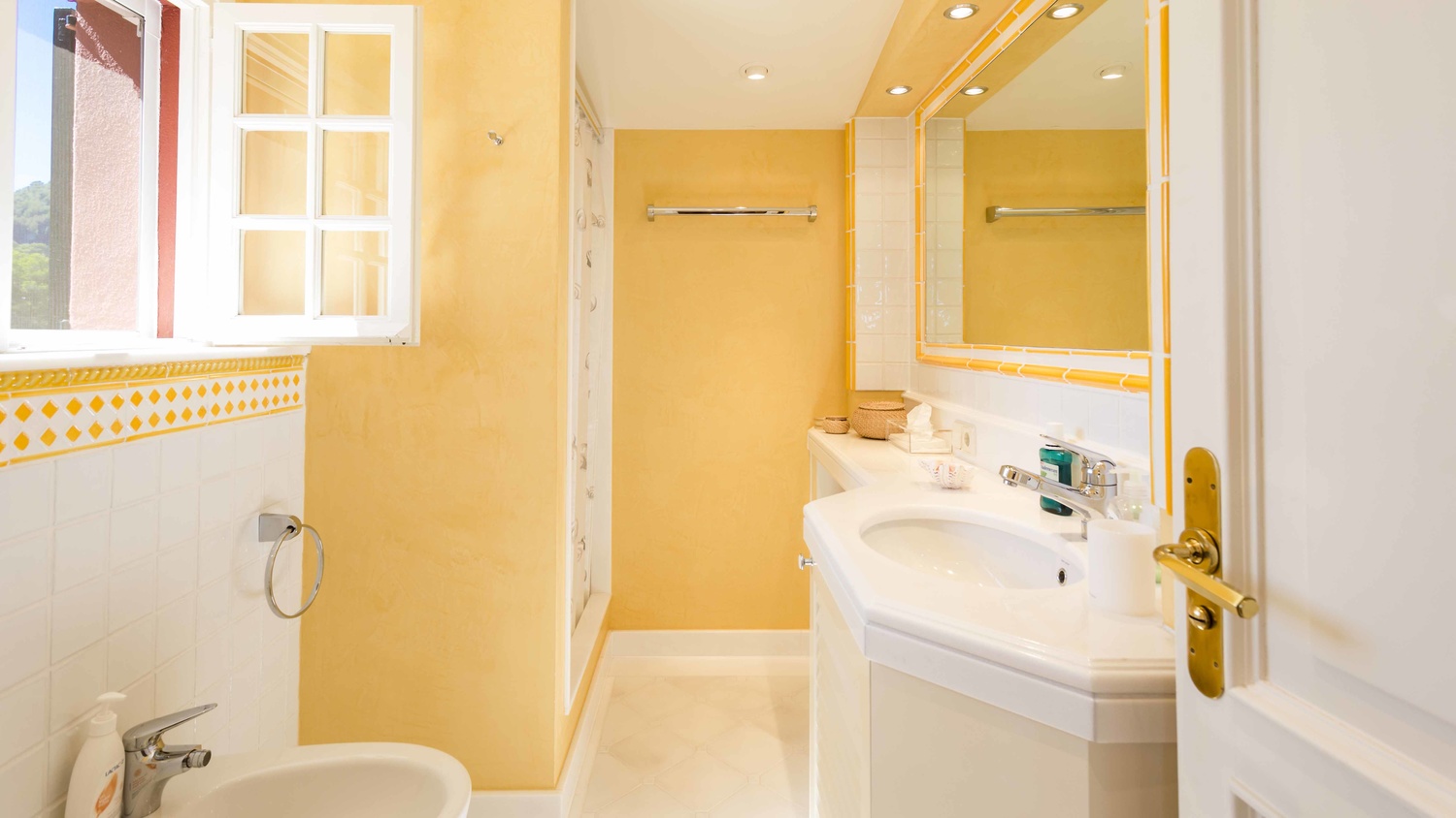 First floor: On the first floor there is a spacious atrium and the master suite with dressing room, bathroom with bathtub and bidet, separate toilet and shower room. In addition, there are two large guest rooms with double bed, each with bathroom, sink, toilet, bidet and shower.