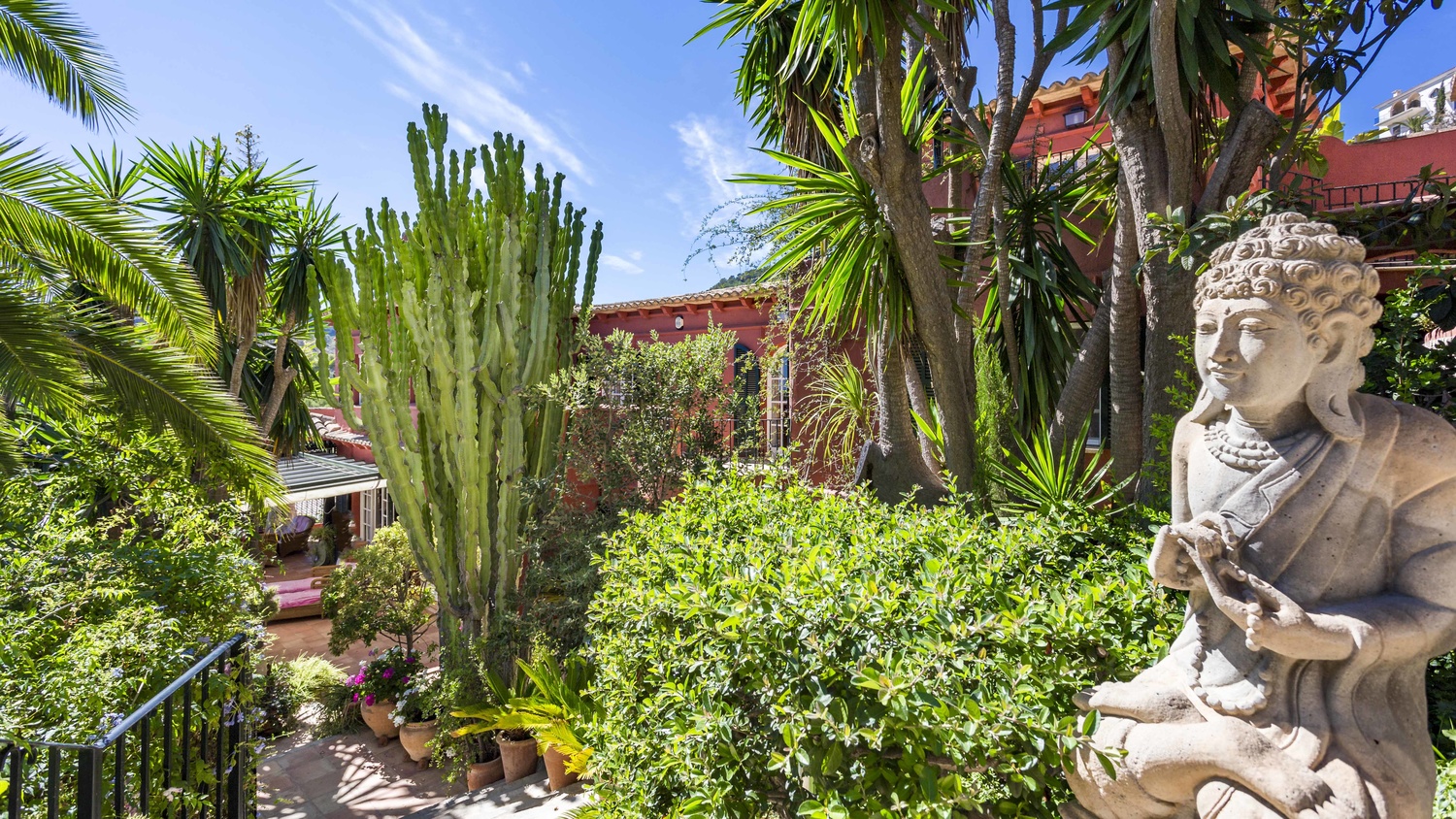 The beautiful Mediterranean garden is multi-level, with very old palm trees, cactus and citrus trees etc.