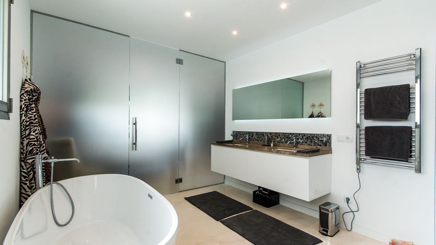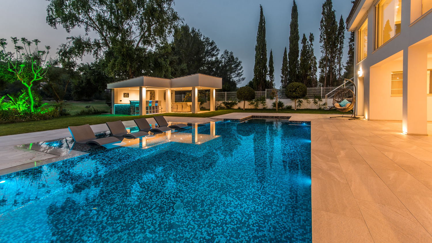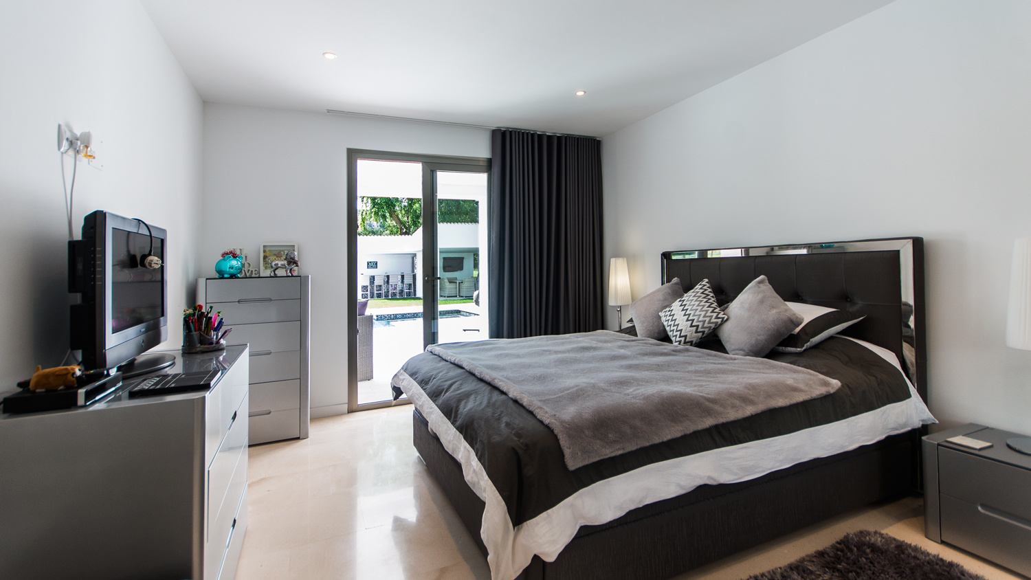On the ground floor, there are 5 double bedrooms, 3 of which with bathroom en suite, whilst the 2 additional bedrooms share a bathroom. Master suite with spacious bathroom and dressing area. On this level, there is a second living area. The pool and covered terrace area can be accessed directly through the bedrooms and the living area.