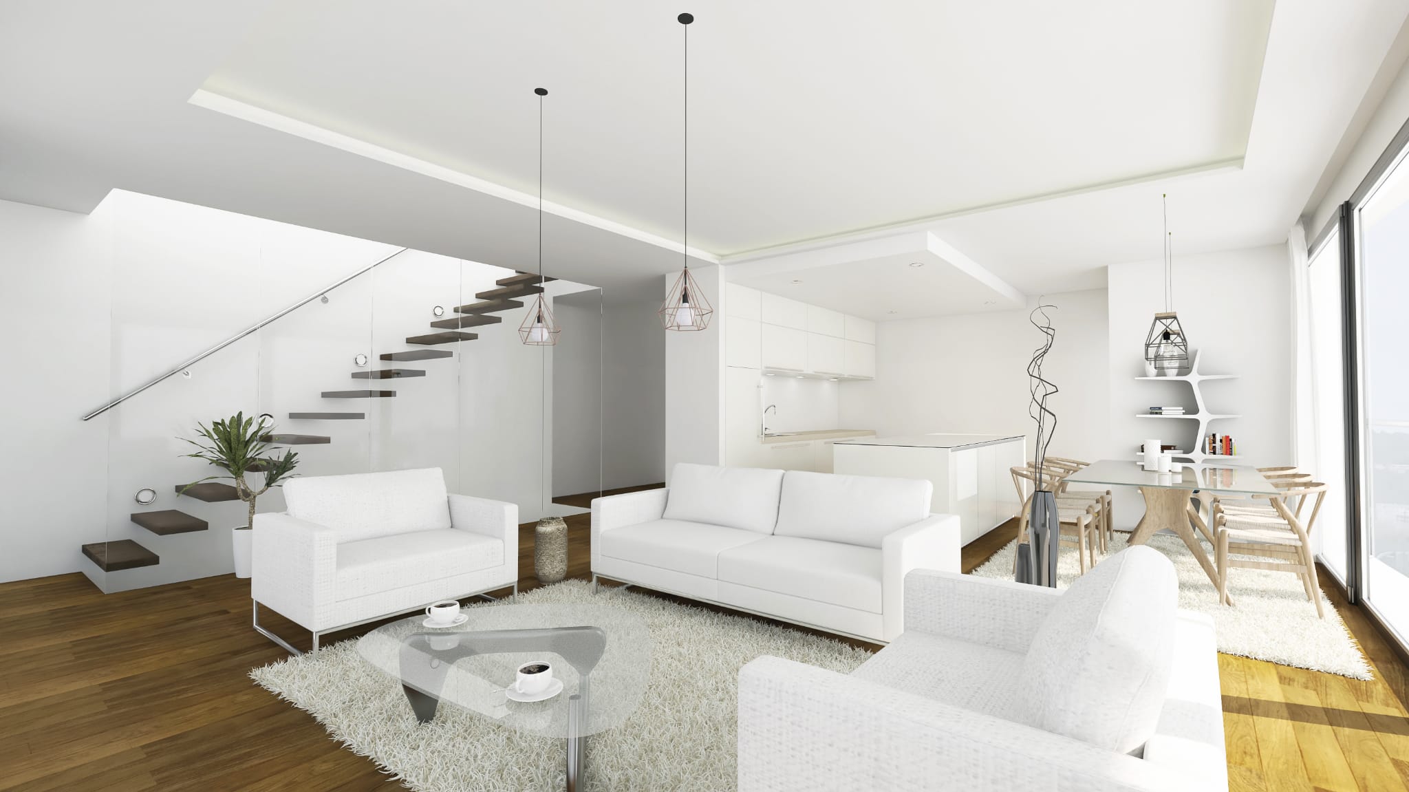 First Floor: Spacious open plan living-dining room and designer kitchen with access to the covered terrace for dining al fresco and with beautiful views, shower room.