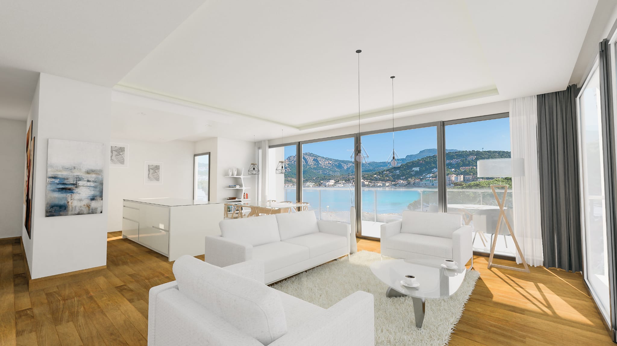 The property is located in a privileged position in the frontline on the beachside of the port called Es Repic in a very sought-after residential area. Restaurants and shops within walking distance and to the lively town of Sóller it is just a five minute. The famous artist village Deia and the well-known mountain village Fornaltux are only a 15-minute drive away. The islands capital Palma can be reached in not even 30 minutes.