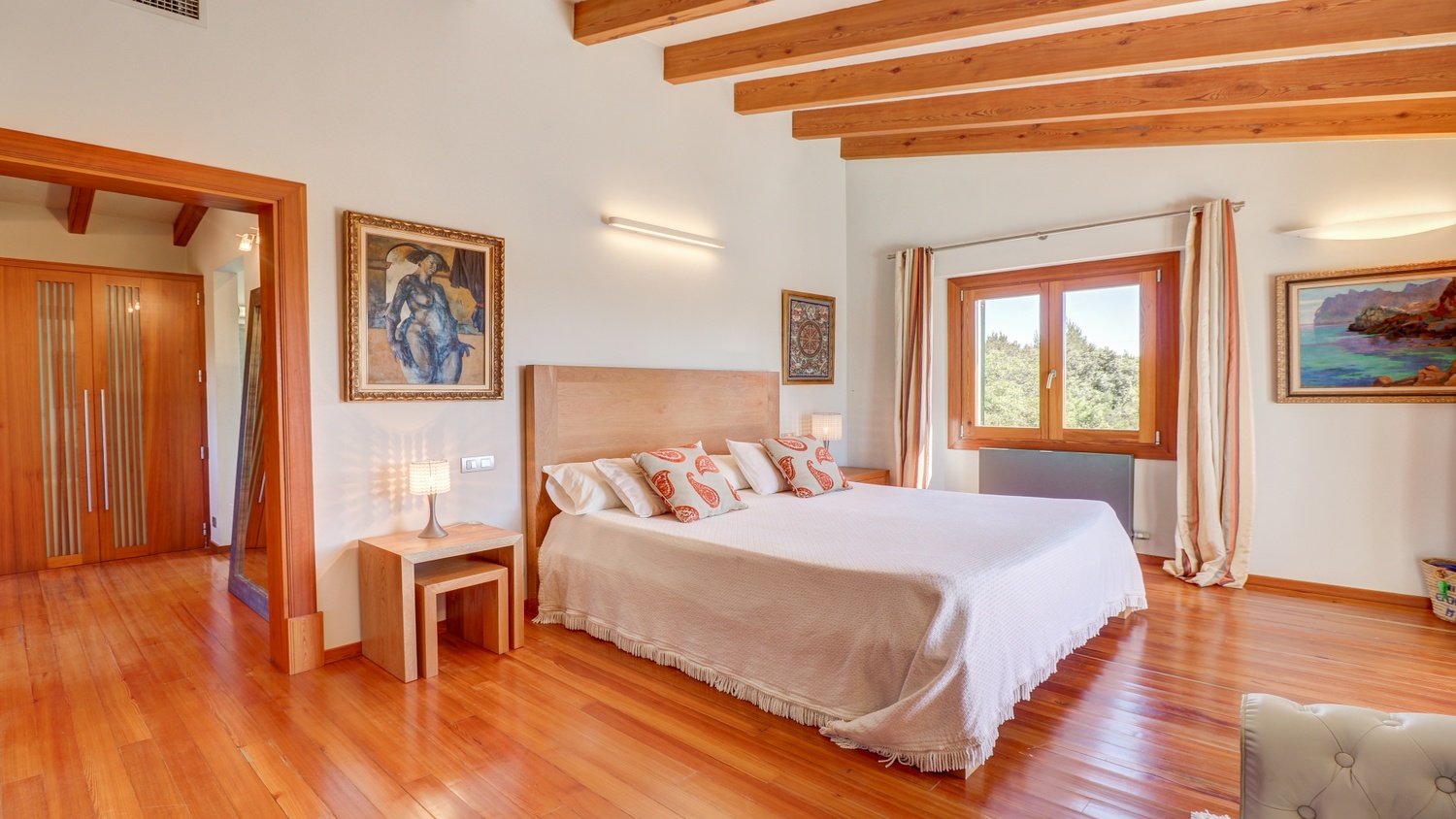 On the first floor is the master suite with a bathroom and a walk in wardrobe/dressing room and which has a spacious terrace with stunning views out over the surrounding countryside.