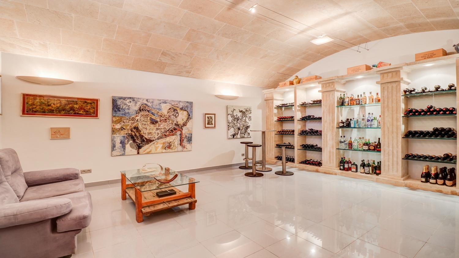 The basement has a wine cellar and space to install a gym or a studio if required.