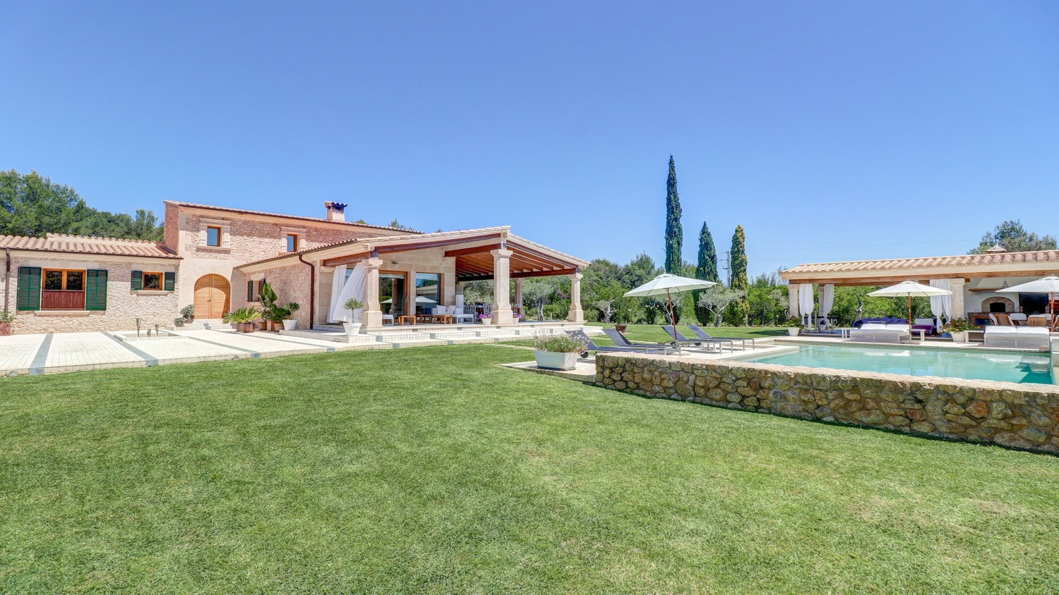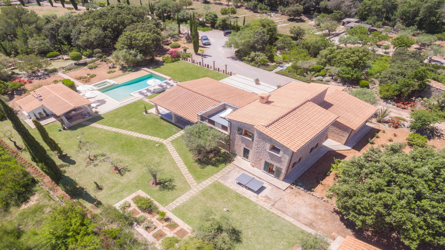 The property is situated close to the Pollensa Golf Course and the local historic town is just a few minutes away with all the necessary amenities. The beautiful beaches and coves of the north coast of Mallorca are a short drive away and Palma and its international airport can be reached in 40 minutes on the motorway.