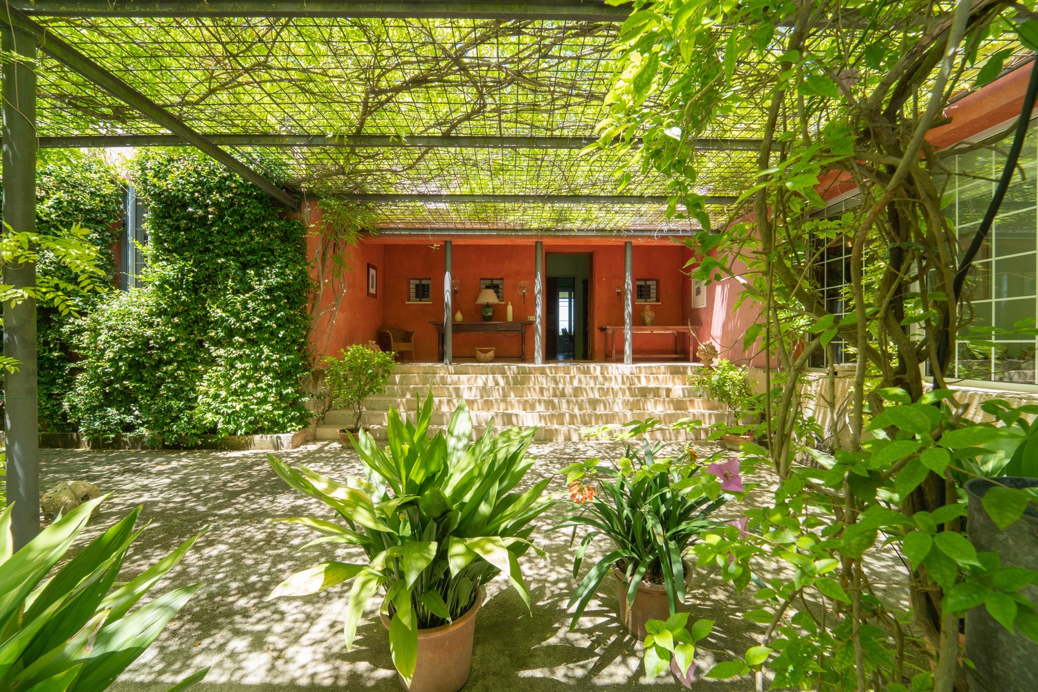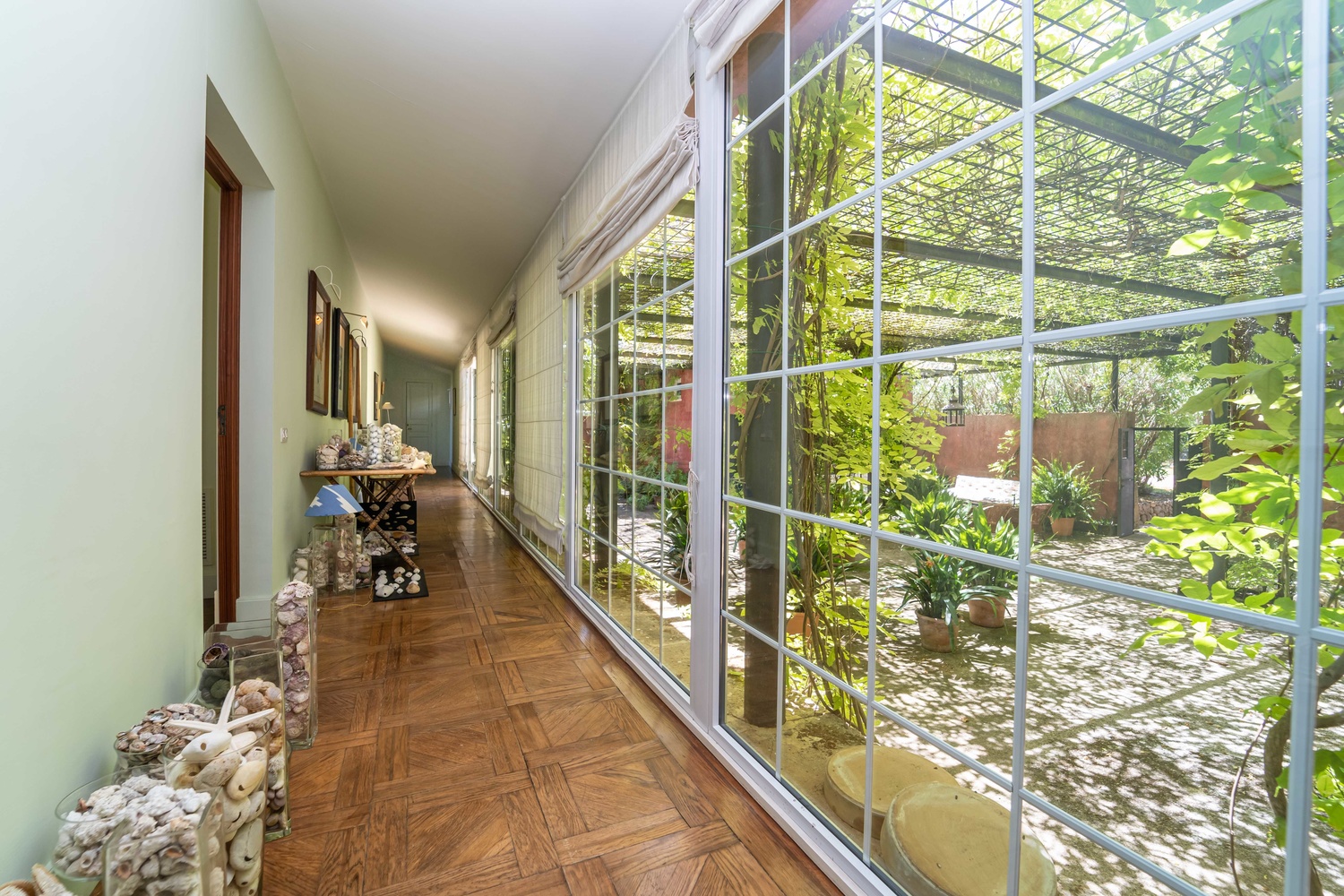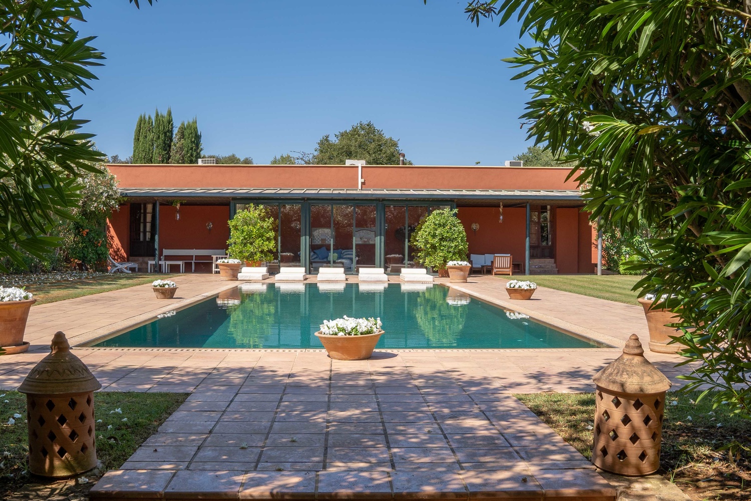 The net living area of 800 m2 of the main house is distributed over one level, which is accessed by a beautiful courtyard, a greenhouse conservatory, large living room with fireplace, dining room, 1 toilet, kitchen, storage room, laundry room, 4 bedrooms with 4 bathrooms and dressing room en suite.