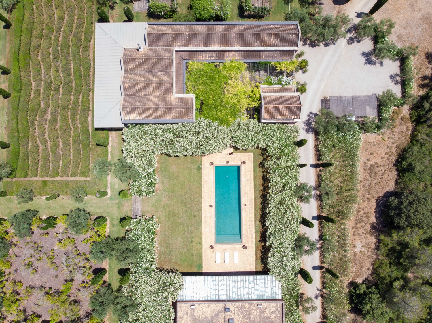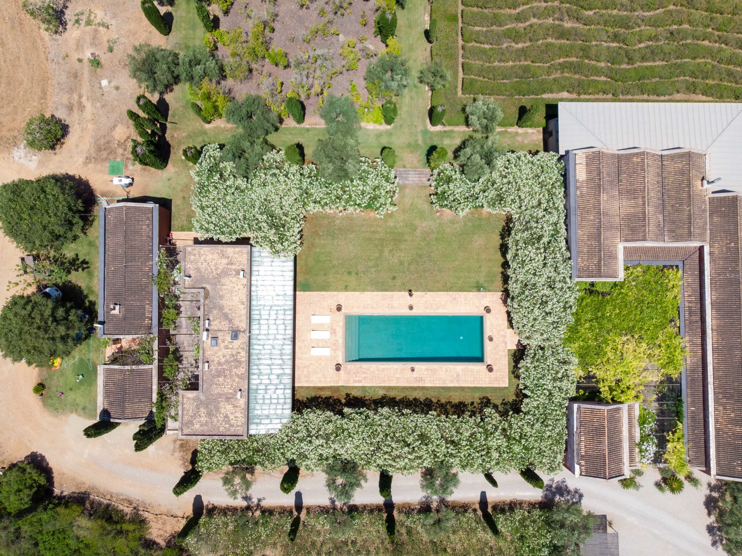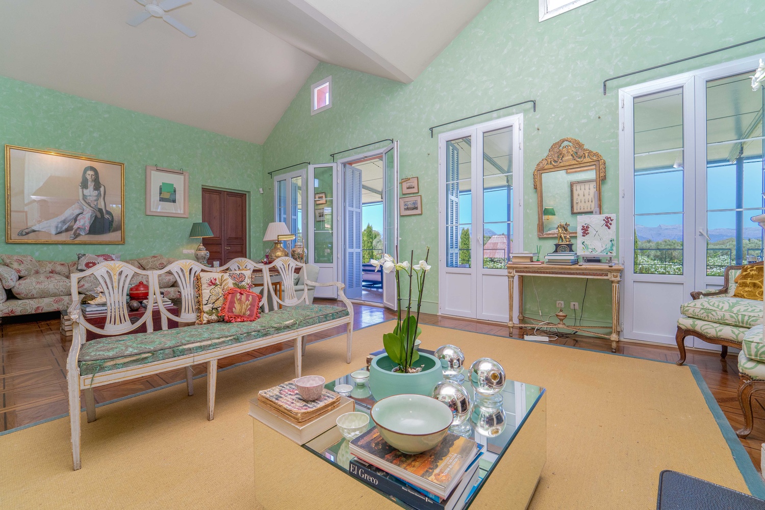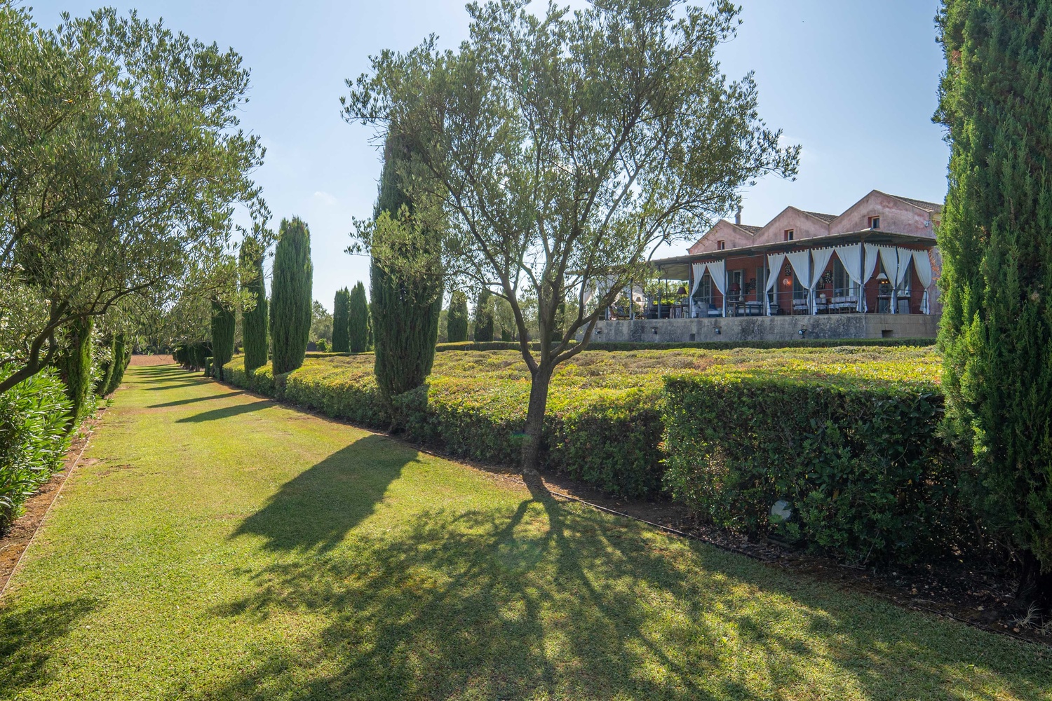 The net living area of 800 m2 of the main house is distributed over one level, which is accessed by a beautiful courtyard, a greenhouse conservatory, large living room with fireplace, dining room, 1 toilet, kitchen, storage room, laundry room, 4 bedrooms with 4 bathrooms and dressing room en suite.