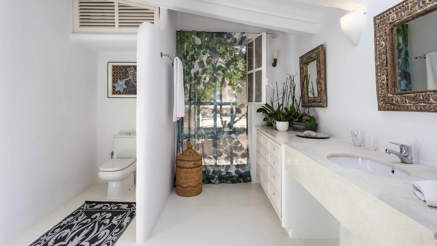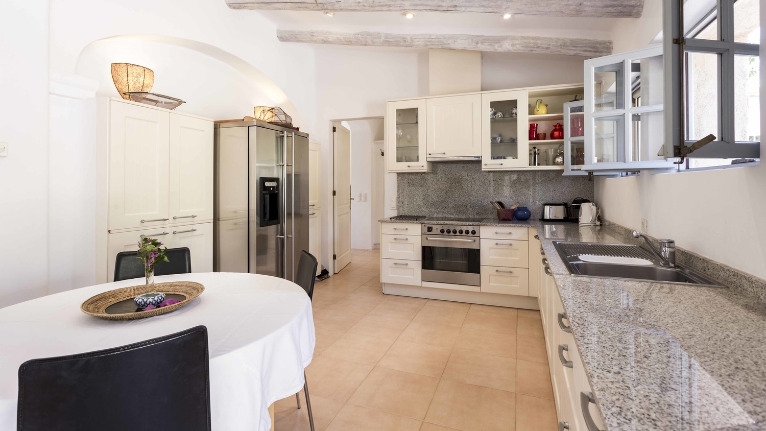 Guest house: an annex on the ground floor with two large bedrooms with en-suite bathrooms, living room with open kitchen and a large private terrace. From the terrace you have direct access to the pool with lawn and solarium area.