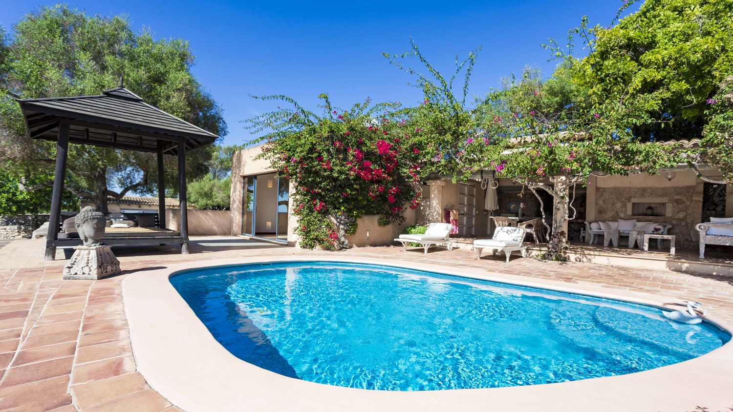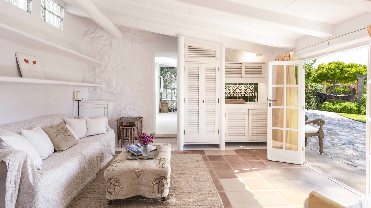 Second guest house: a romantic unit with a large bedroom and en-suite bathroom in the garden area, between the main house and the pool.