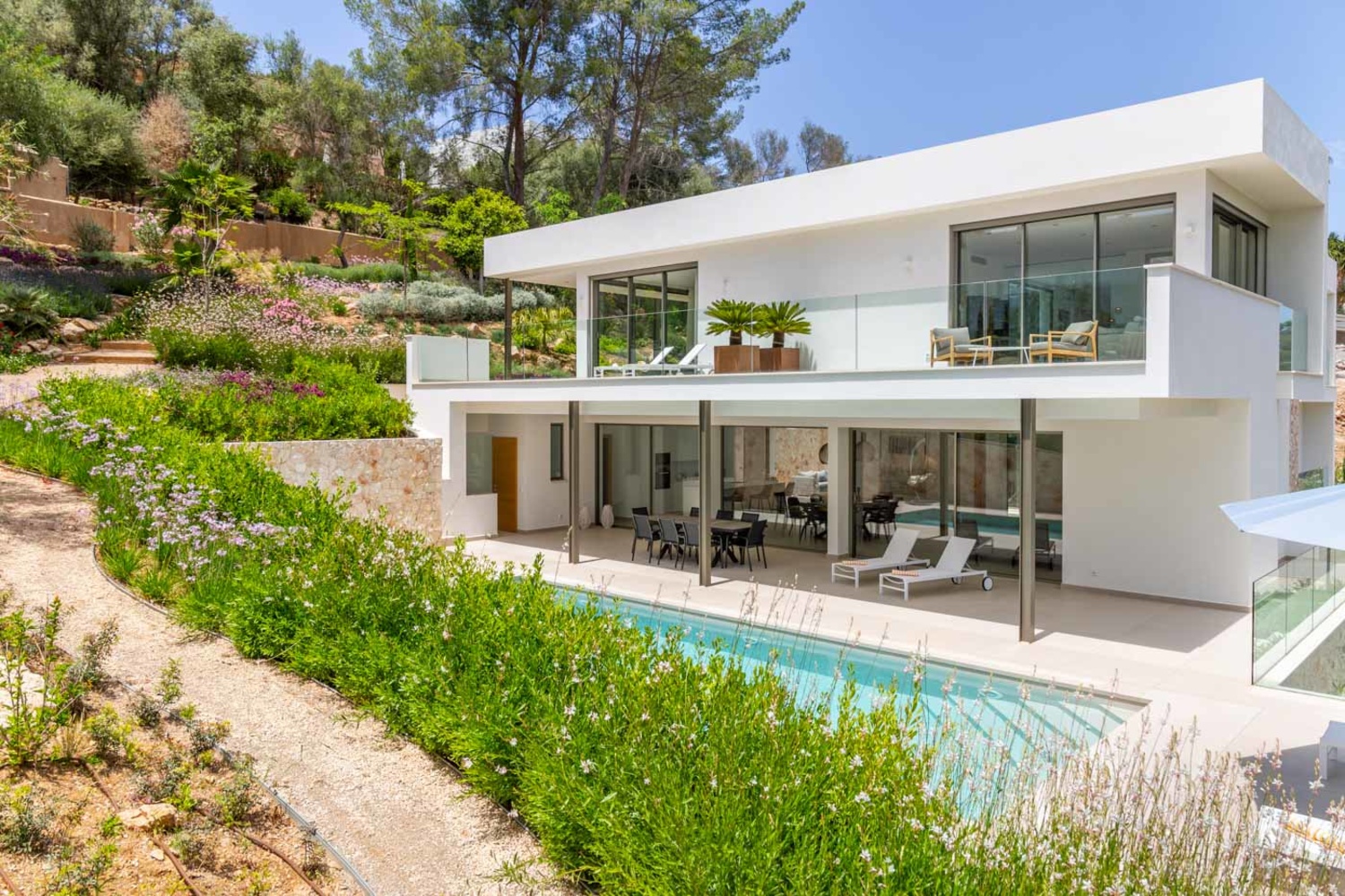 The villa is located in Palma's "Beverly Hills", called Son Vida. Three golf courses and two 5-star hotels can be found in the immediate vicinity and Palma, as well as various ports can be reached within a few minutes drive.