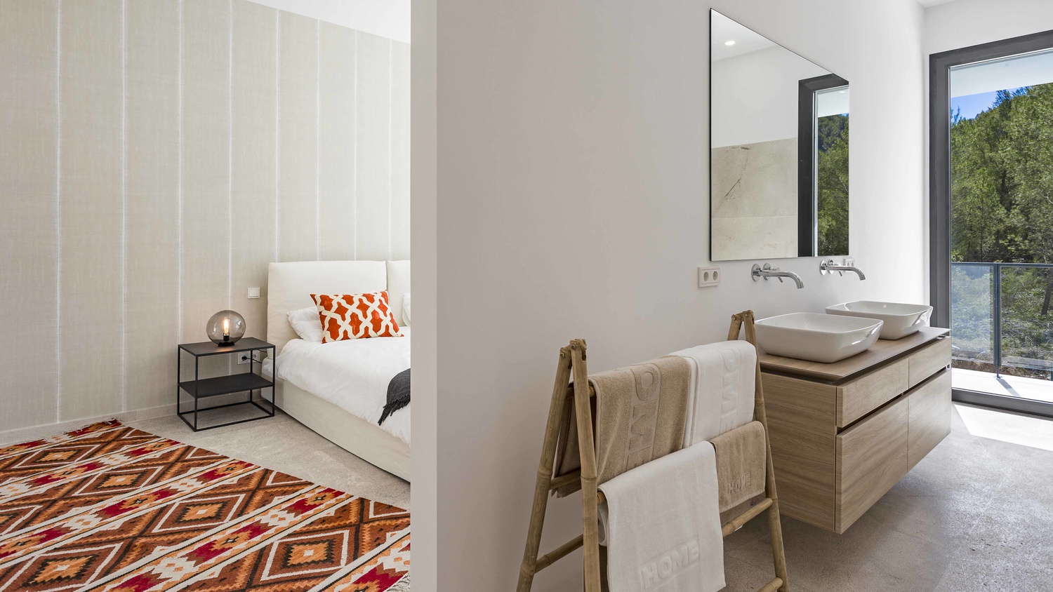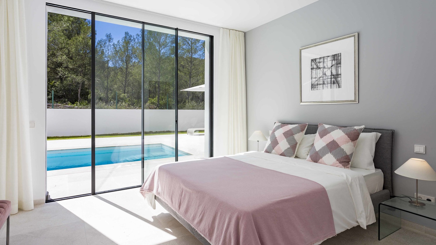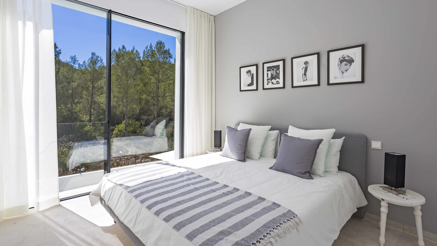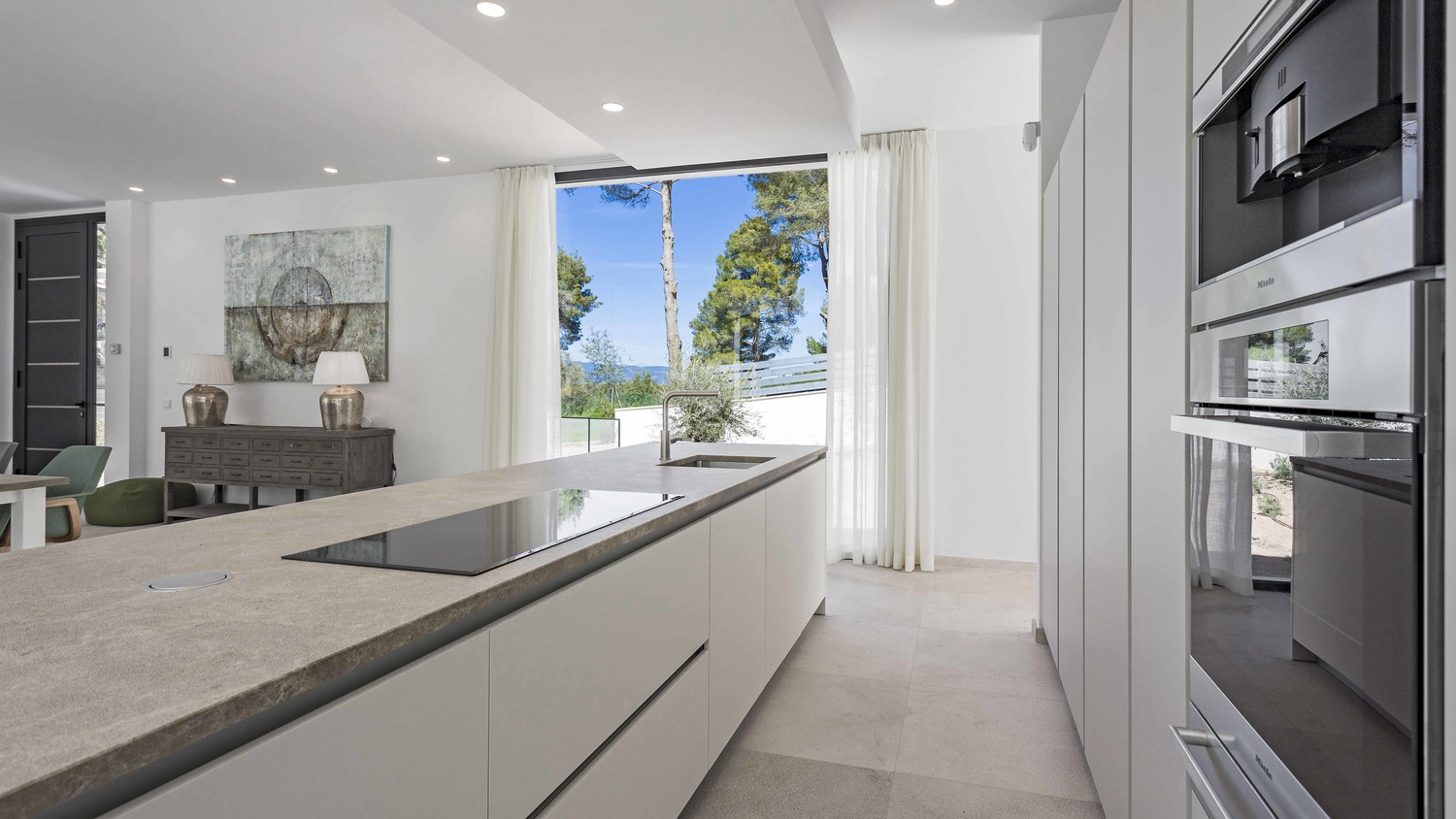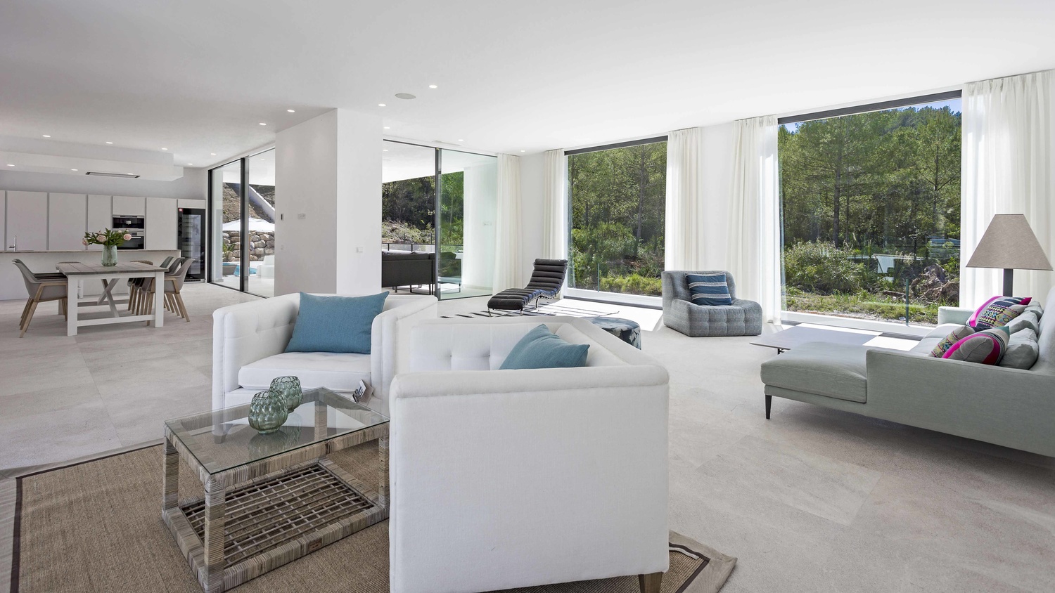 This recently finished villa is bedded in a well-kept Mediterranean garden with a large outdoor heated pool and several covered and uncovered chill and dining terraces.