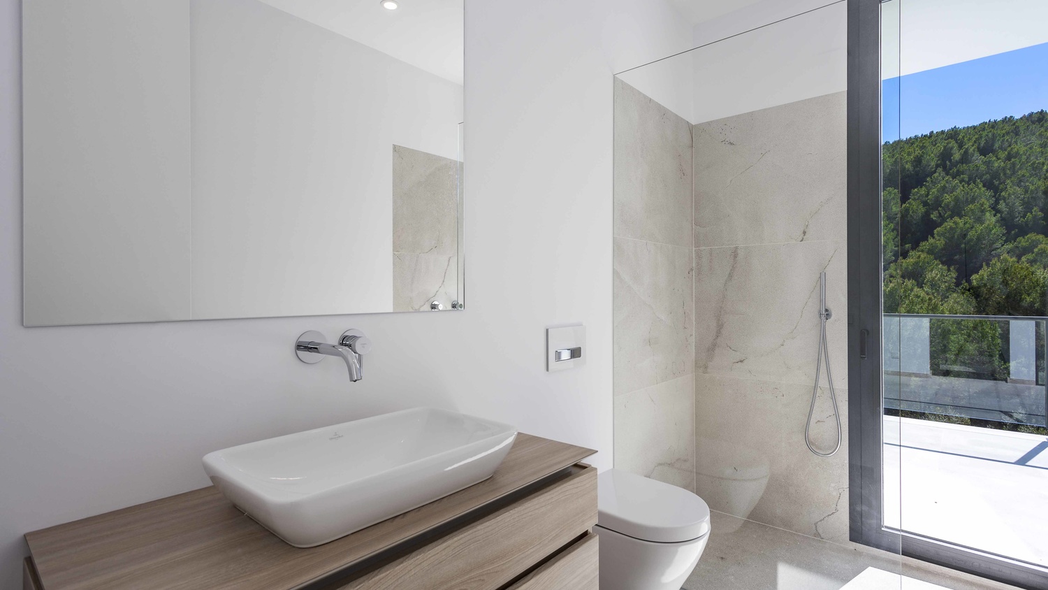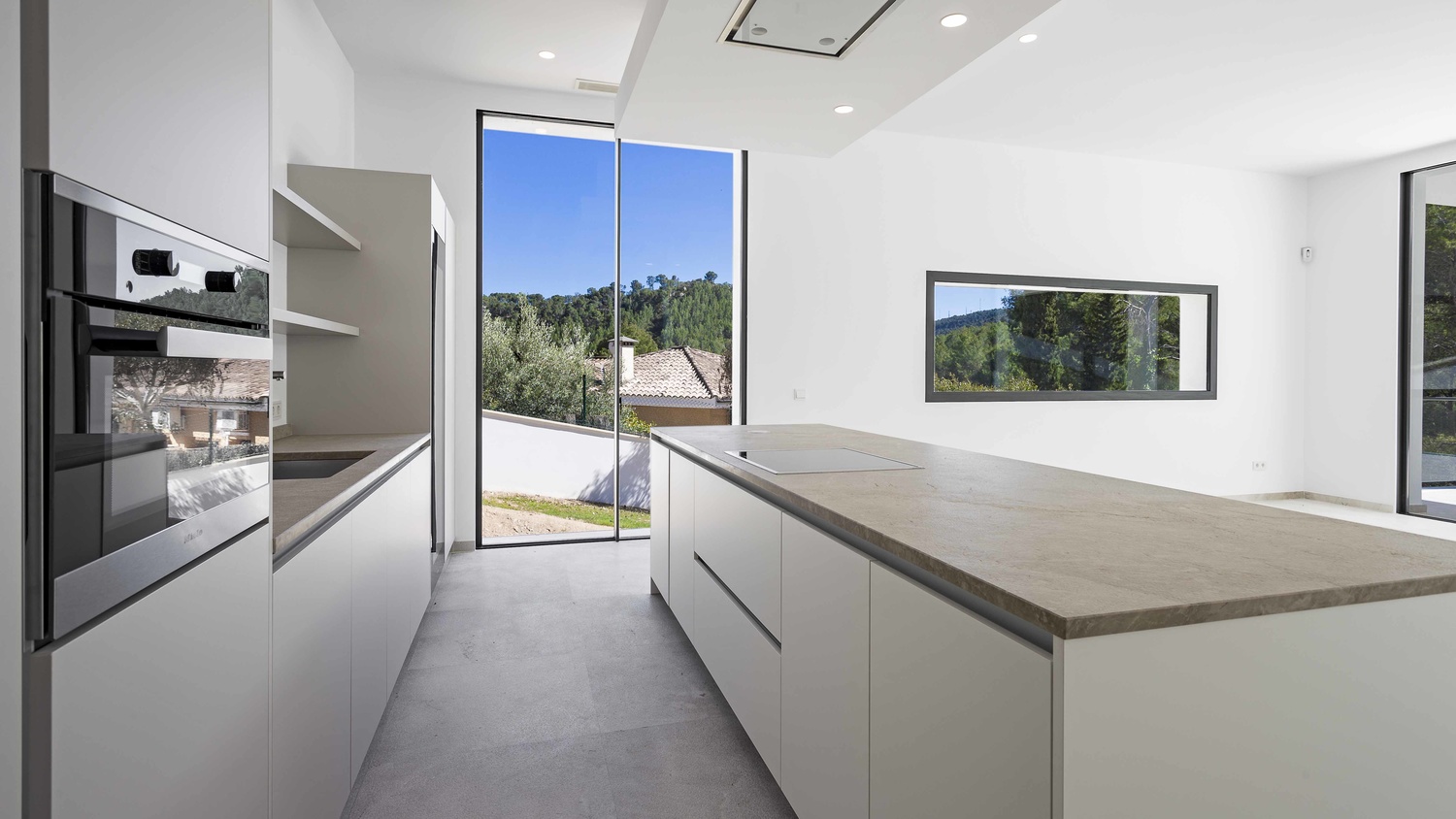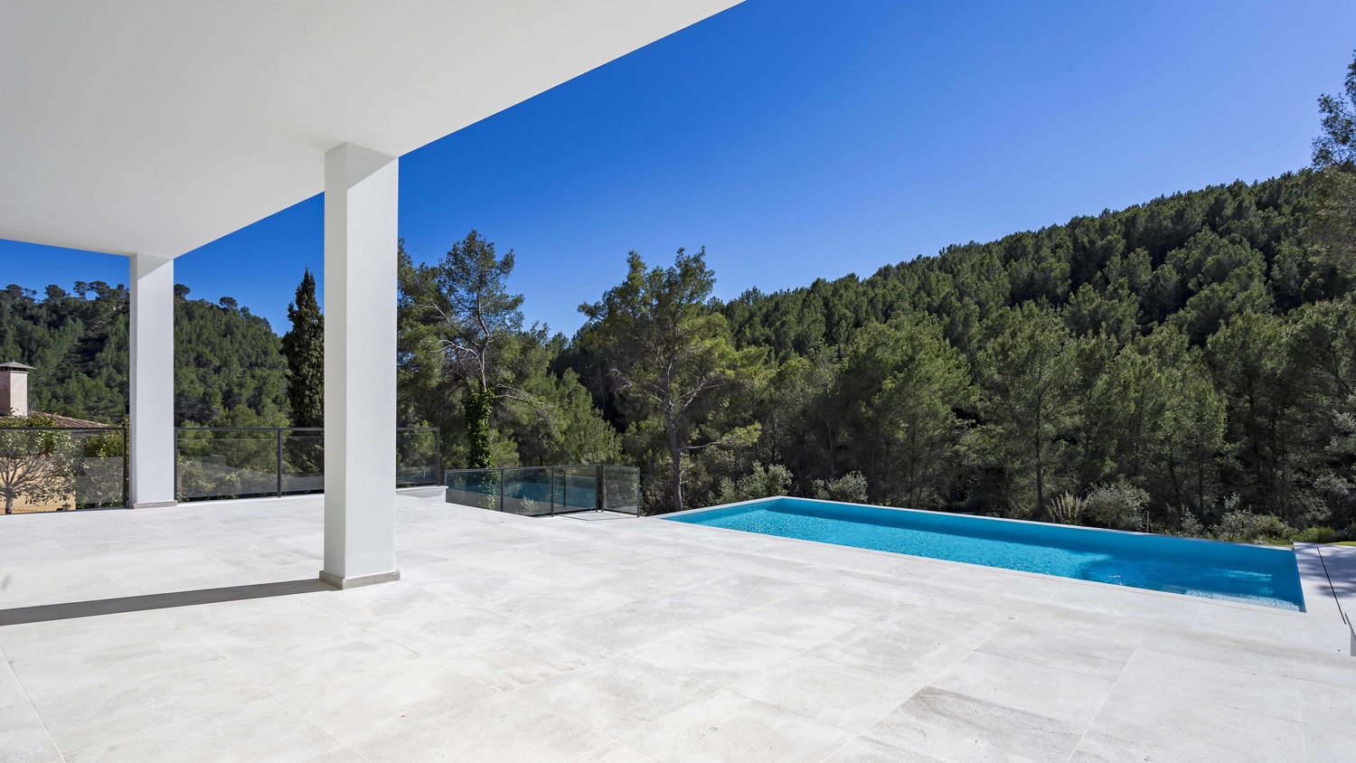 This recently finished villa , is bedded in a well-kept Mediterranean garden with a large outdoor heated pool, and various covered and uncovered chill and dinning terraces.