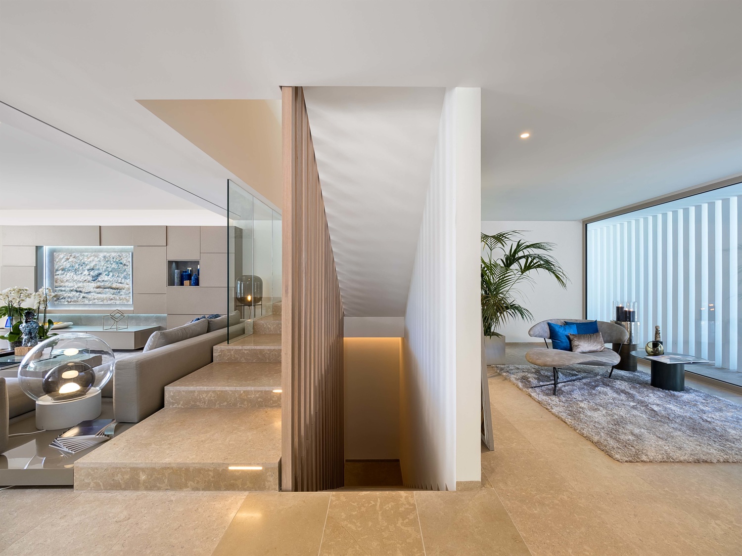 The net living area of 325 m2 plus terraces is spread over three floors.