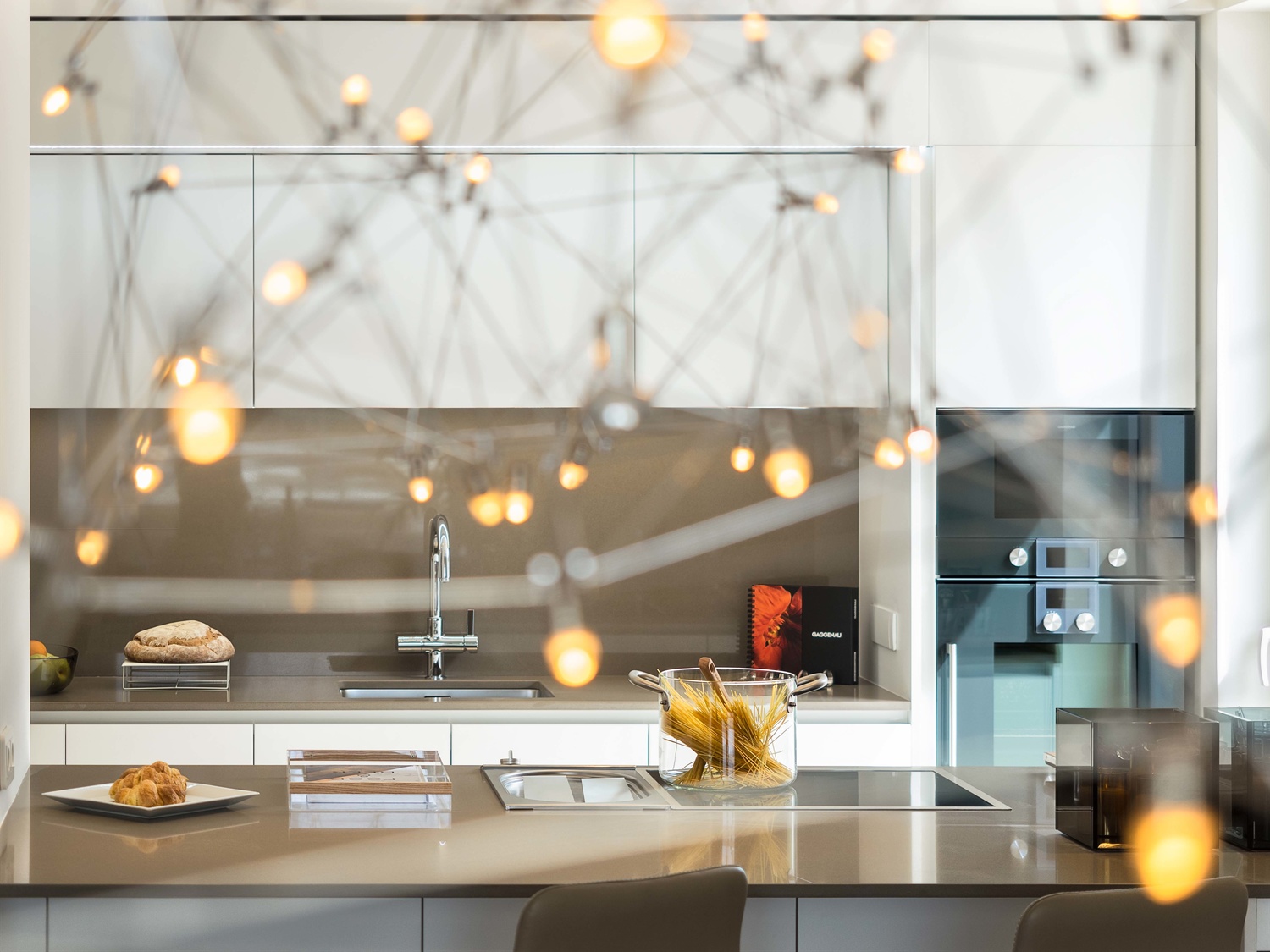 Ground floor: living area with open kitchen and dining room, utility room, WC, large covered terrace of 40 m2 leading towards a private garden of 50 m2, private pool of about 15 m2 with summer chillout area of about 12 m2.