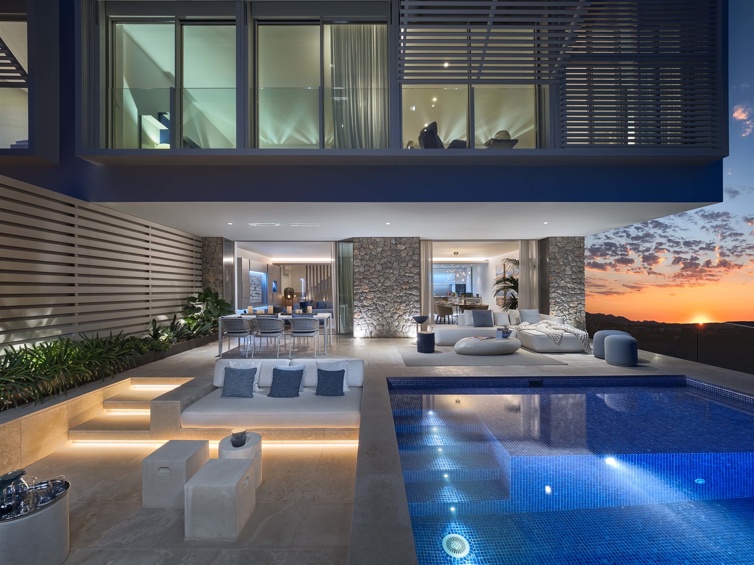 The New Folies complex consists of 41 houses, all with private pool and garden. At the moment there are still 6 villas available with the price range between 3.690.000 to 2.105.000. The owners of these villas have access to the community pool, as well as the social club and spa of the complex, and receive a VIP card for the Beach Club Cala Llamp.