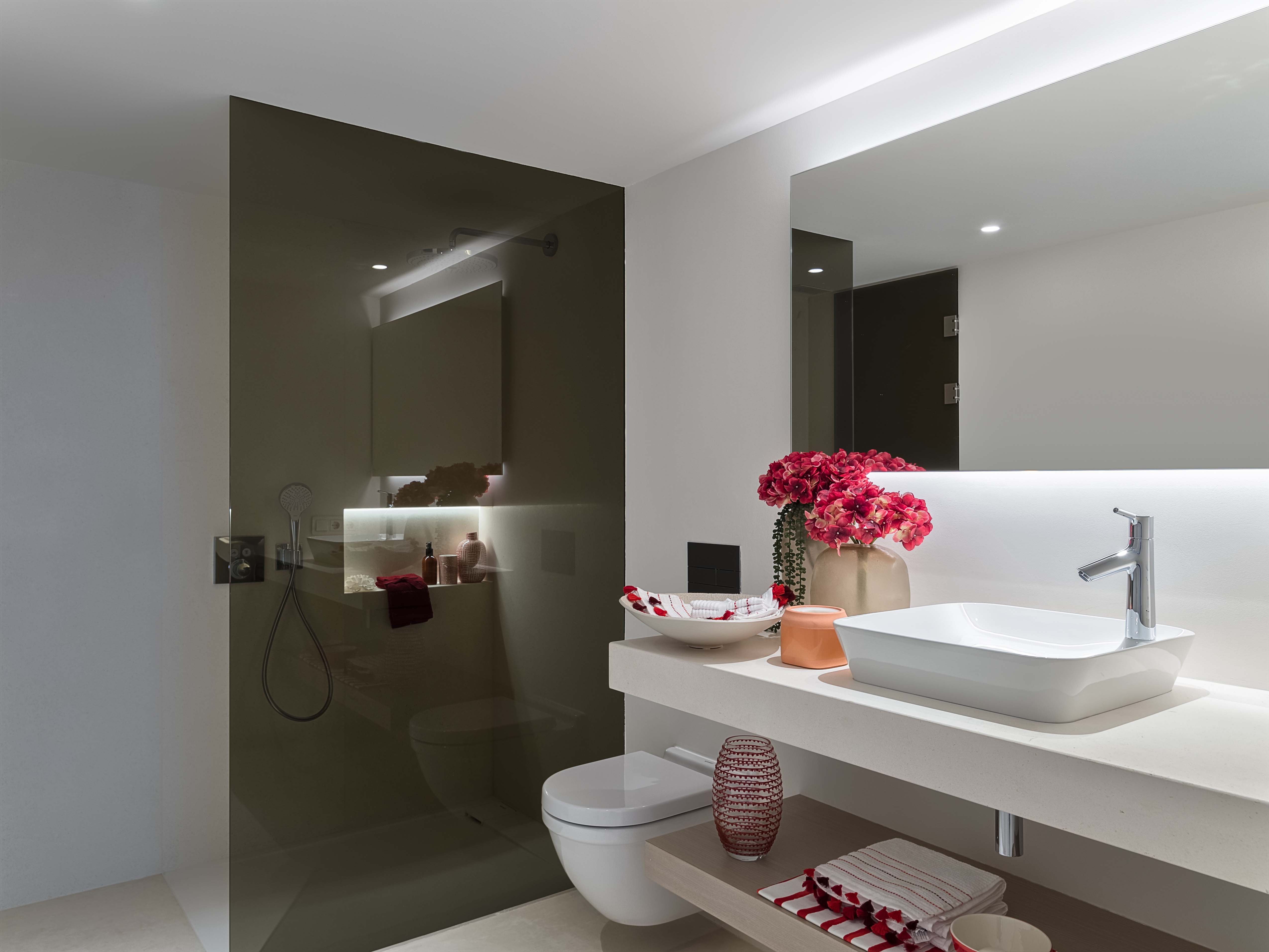 On the first floor, you find the three spacious bedrooms with bathroom en-suite, which combine luxury with great design. In addition, there are several chill areas.