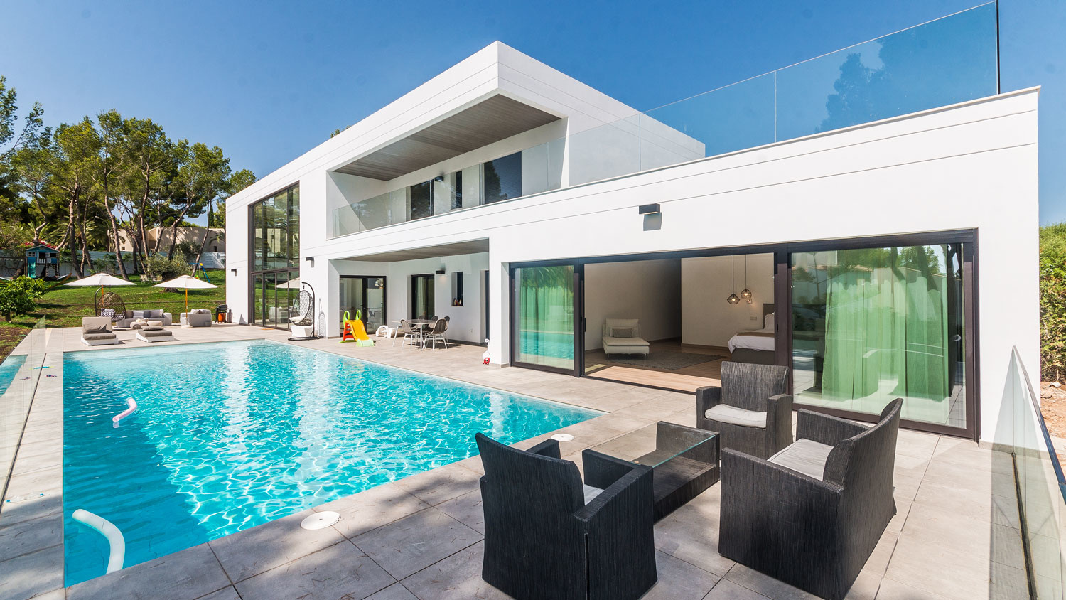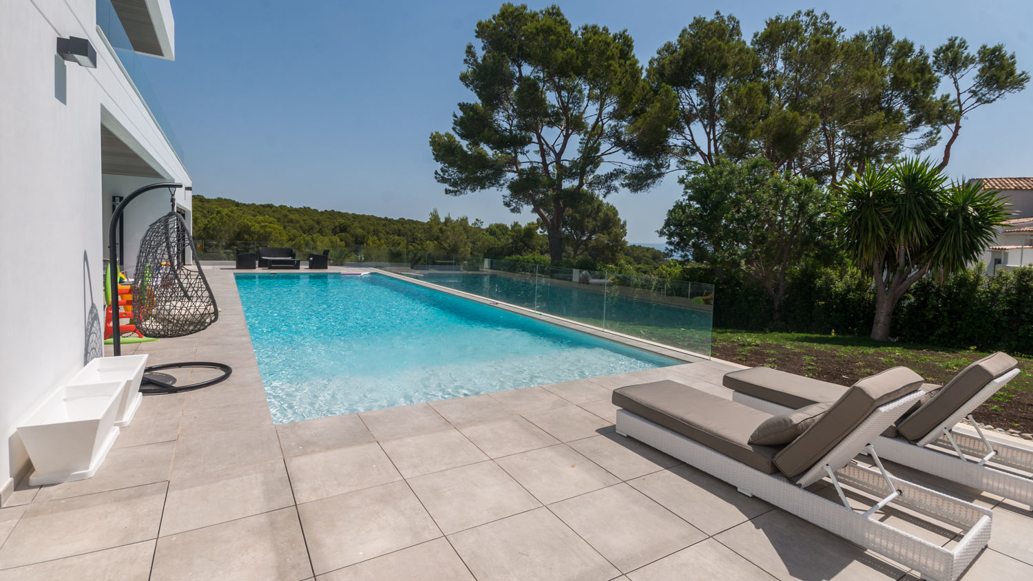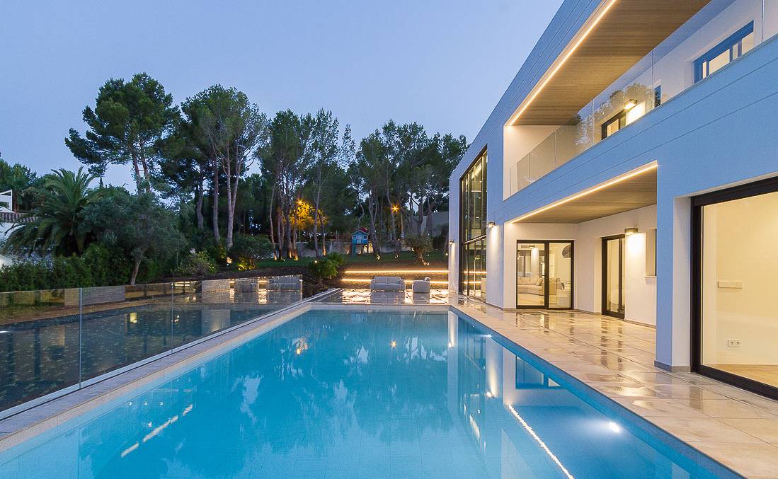 This modern newly built villa, located in peaceful Sol de Mallorca, is surrounded by nature and within walking distance to a nice little cove.