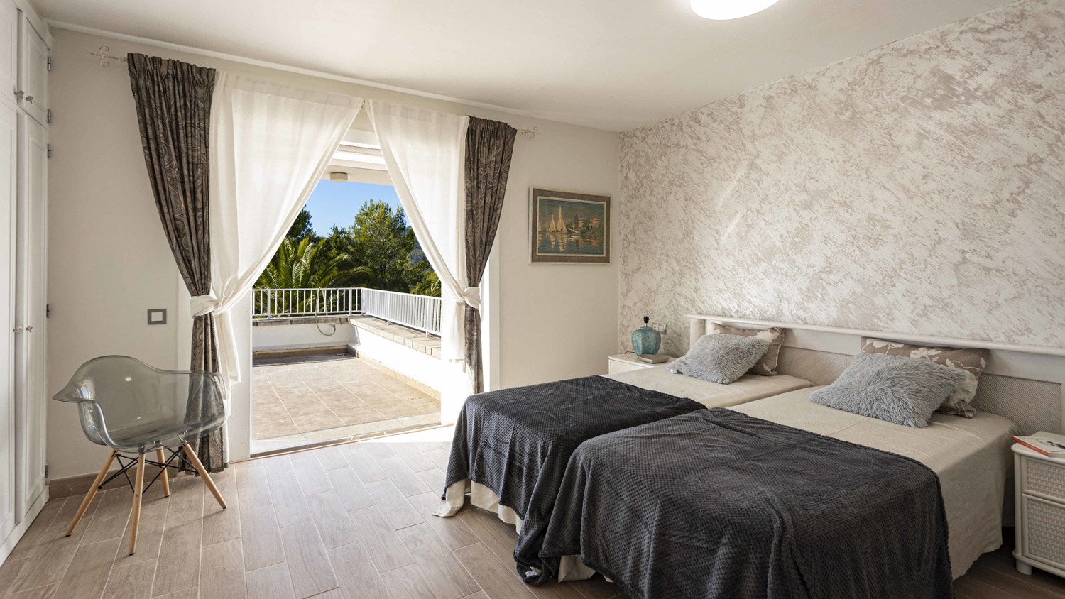 First floor: 4 double bedrooms, two of which with bathroom en-suite as well as dressing room and access to a big terrace from where you can enjoy a spectacular view over the Bay of Palma, and two further bedrooms, which share a bathroom.