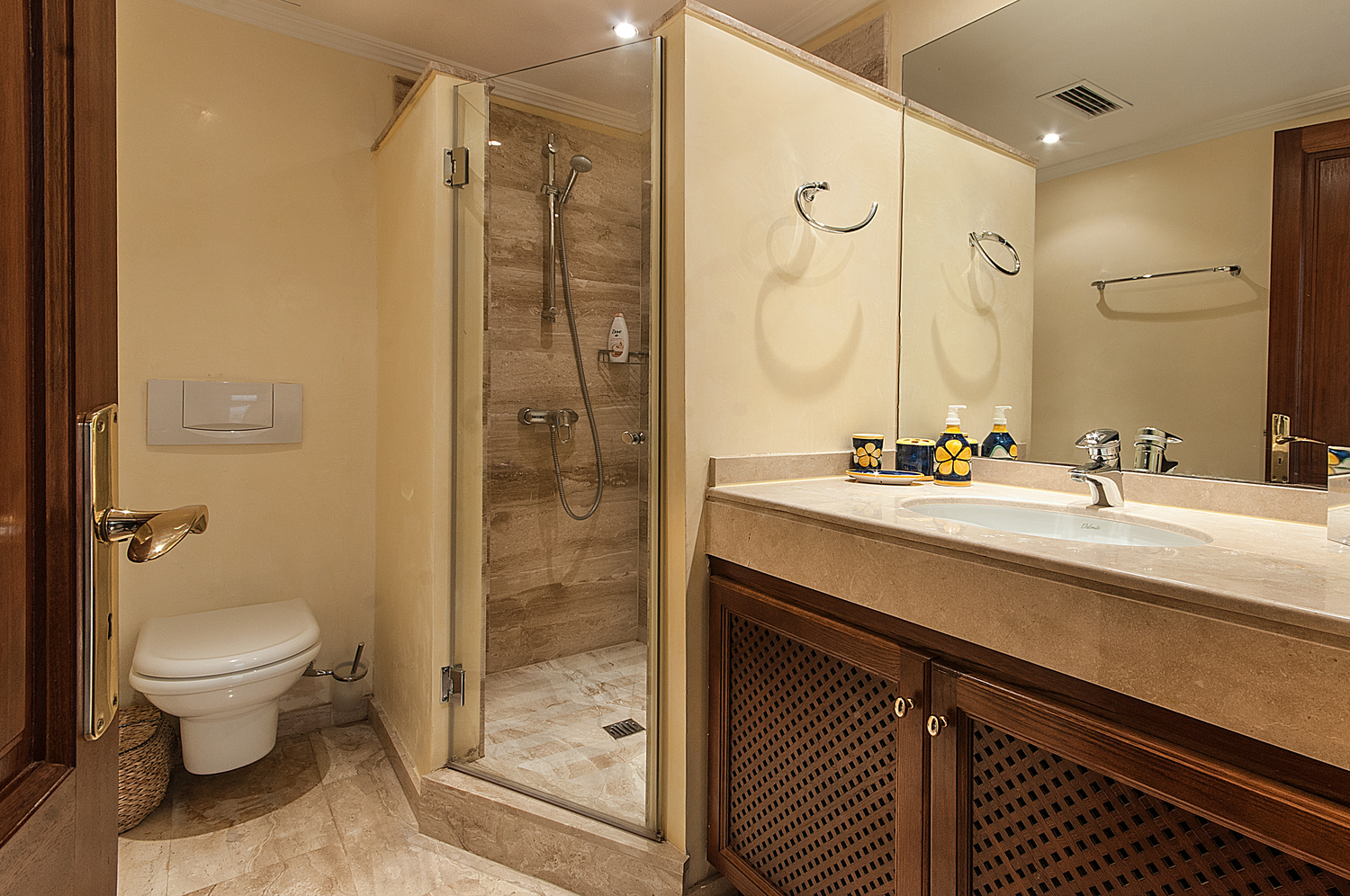 Ground floor: 4 bedrooms and 4 bathrooms (2 of them en suite), one large room, utility room and storages.