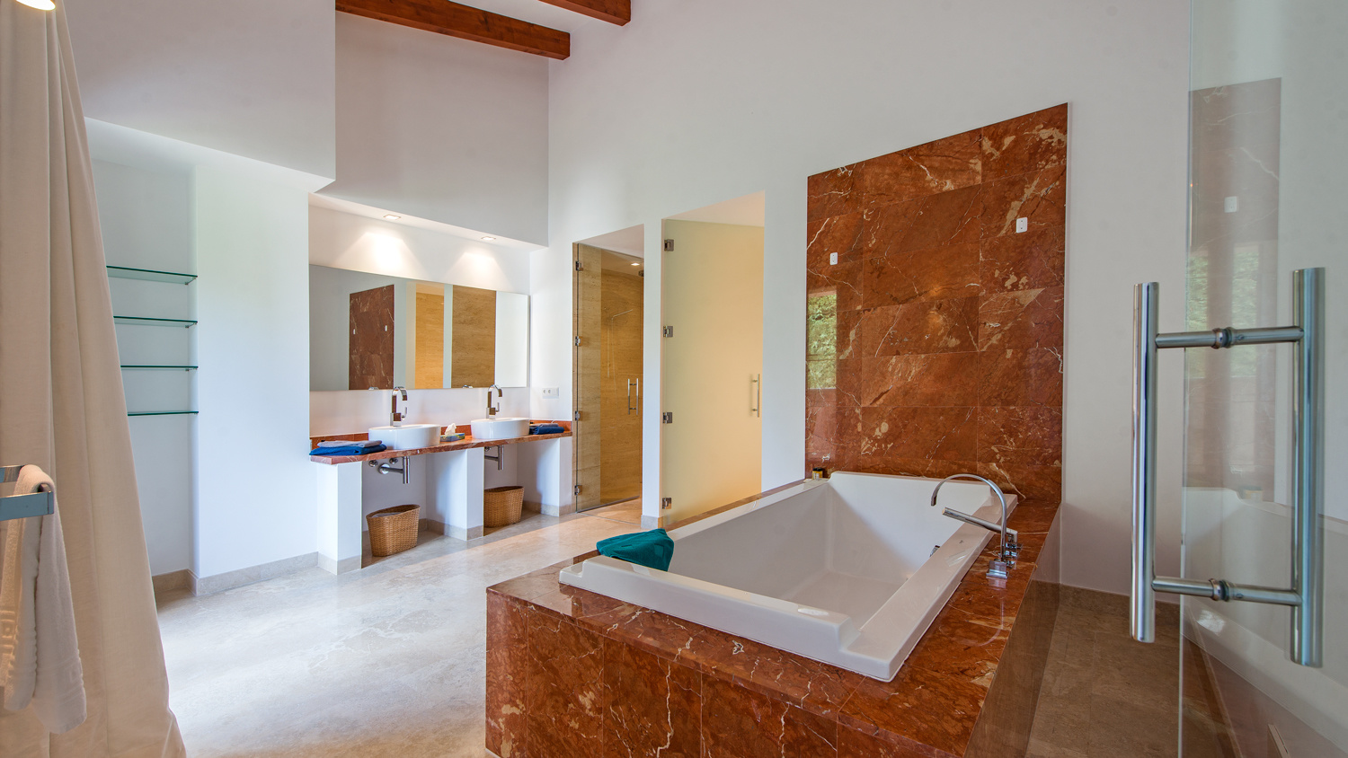 The beautifully landscaped garden with its partly covered terraces gives a very special ambience. The pool has a cozy seating area with a fireplace.