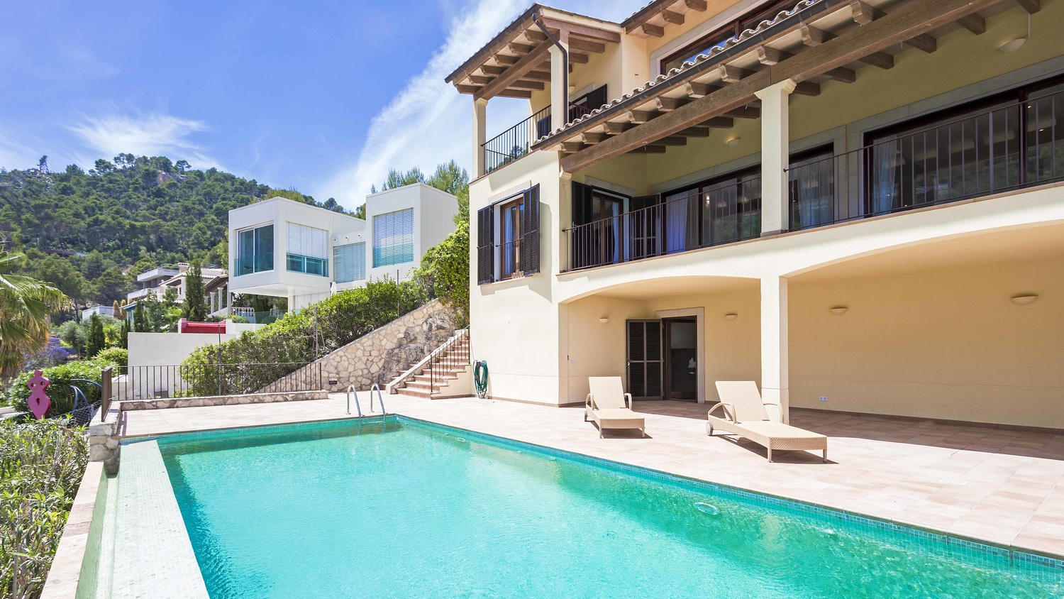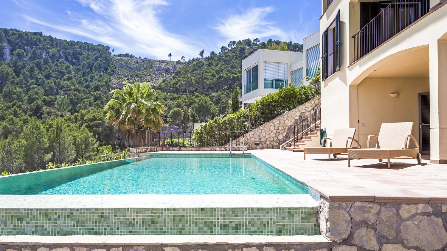Its all about views! And this villa offers the fascinating "Son Vida view" in perfection. From the pool level the eye wanders over the bay of Palma with the Cathedral of Mallorca behind the sparkling blue of the sea. In the evening hours, the light spectacle of the vibrant capital Palma is always an experience.