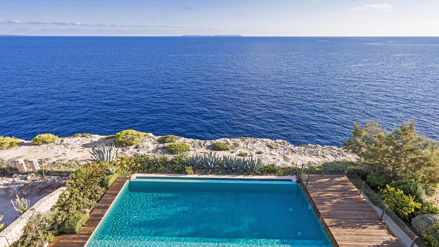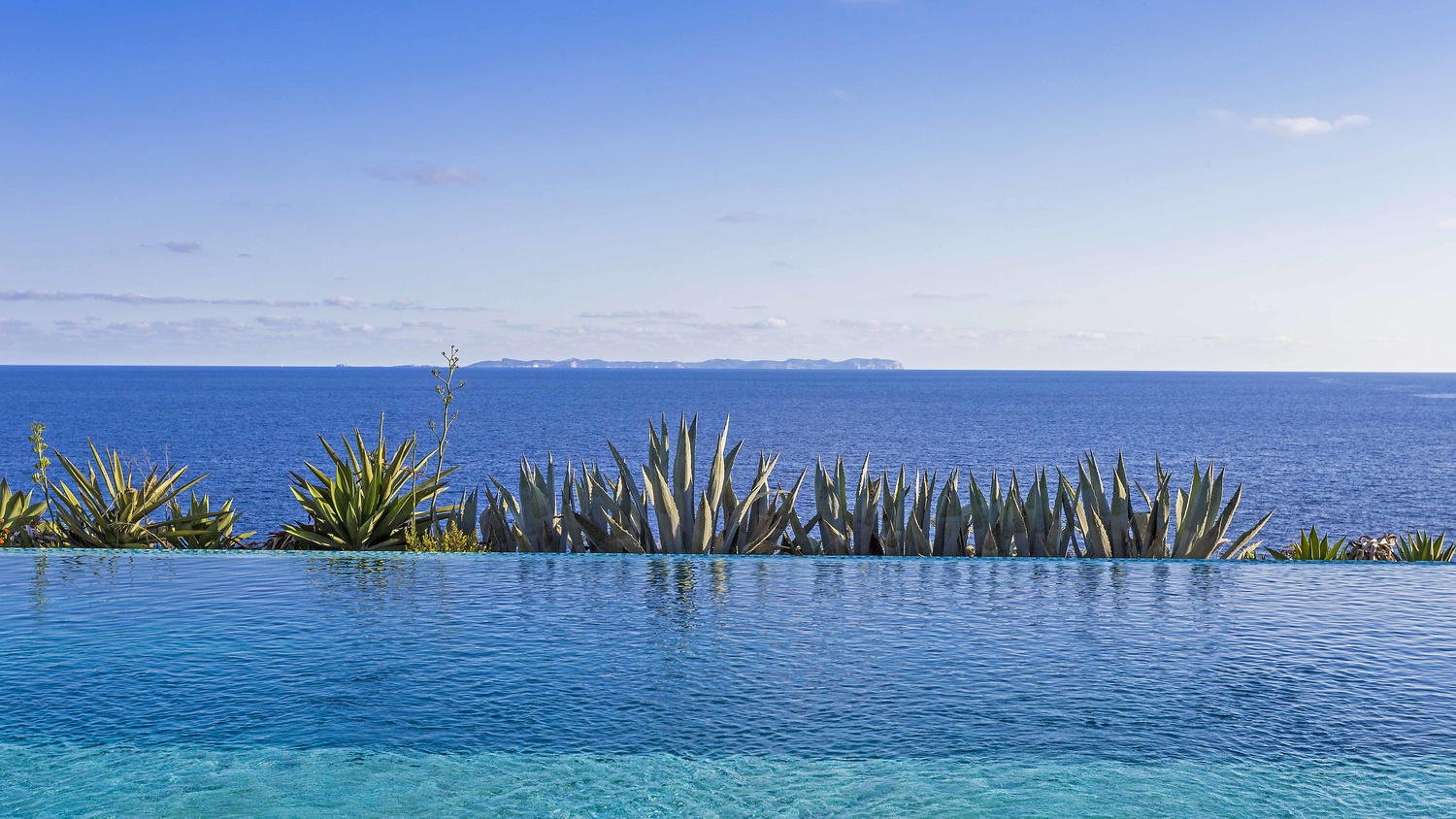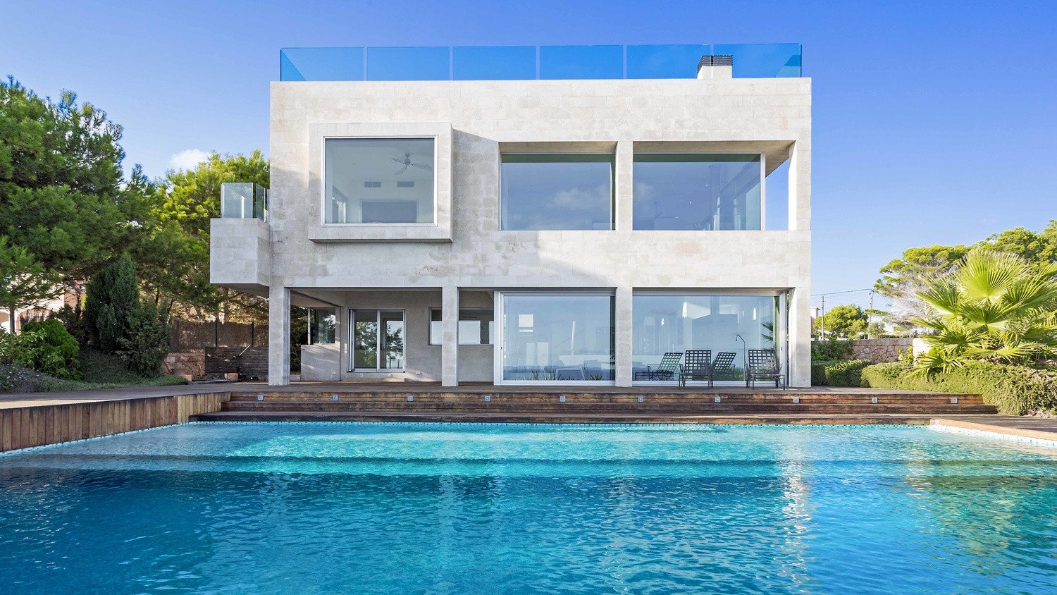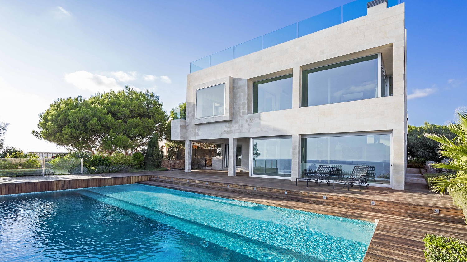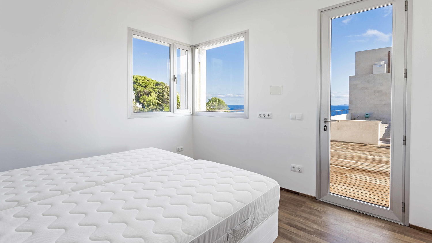 Through the entrance you reach the spacious, open living and dining area with double ceiling height and view of the crystal gallery on the upper floor. Due to the large window front you enjoy a unique sea view of the island of Cabrera and of the pool terrace with its impressive infinity pool!