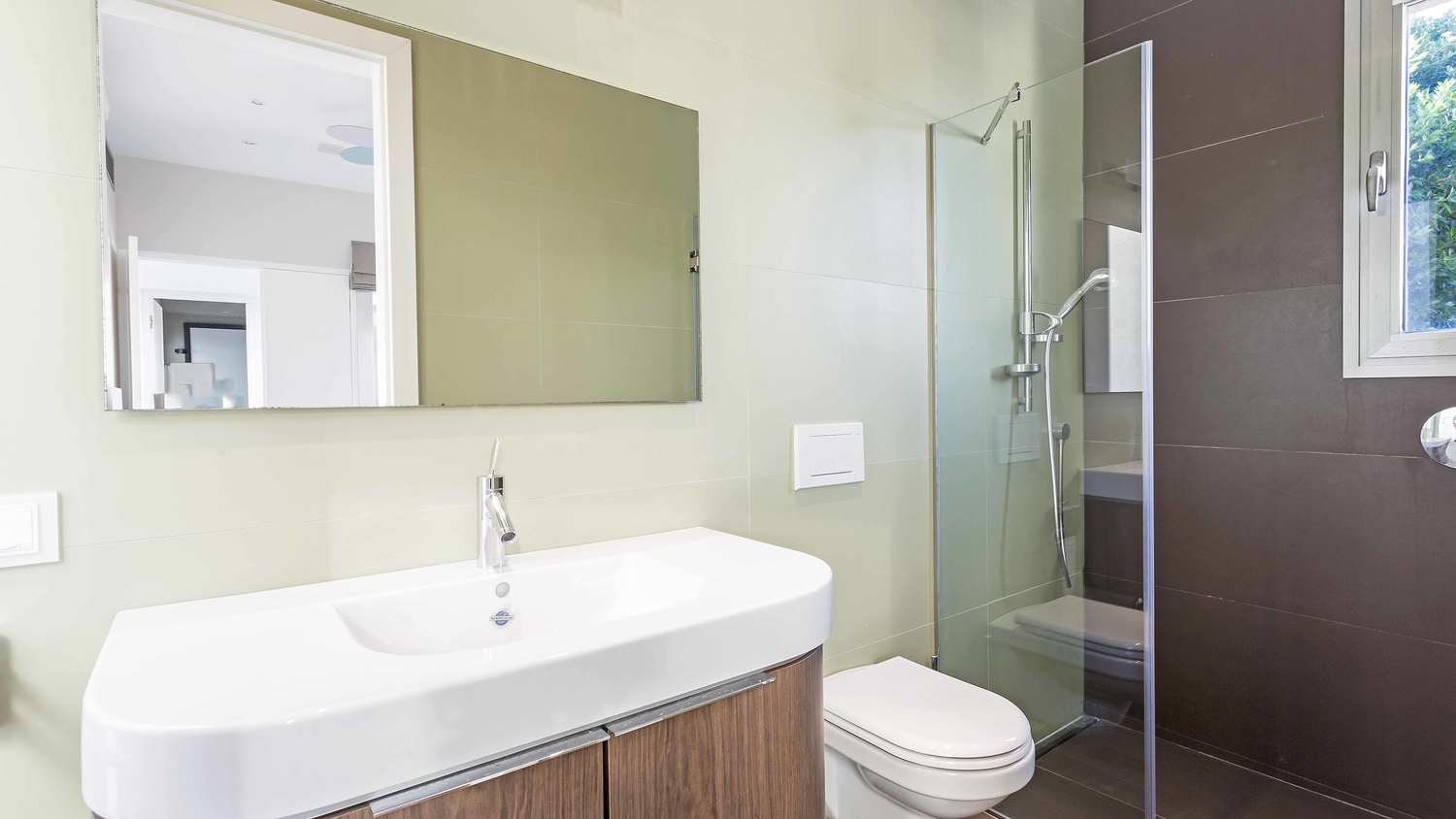 The ground floor has got 2 guest rooms with bathroom en-suite, a laundry room and an extra guest toilet.