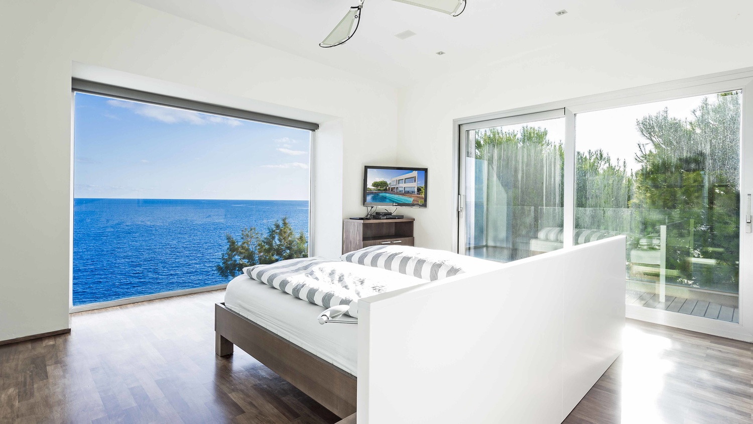 This modern designer villa stands out for its unique waterfront position and amazing sea view on one hand and for its light-flooded construction and living comfort of the highest level on the other hand.