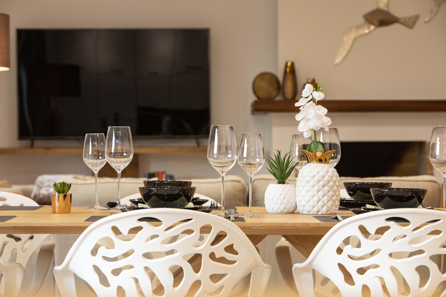 The net living area of 260 m2 plus terraces is distributed over 2 floors and 2 houses.