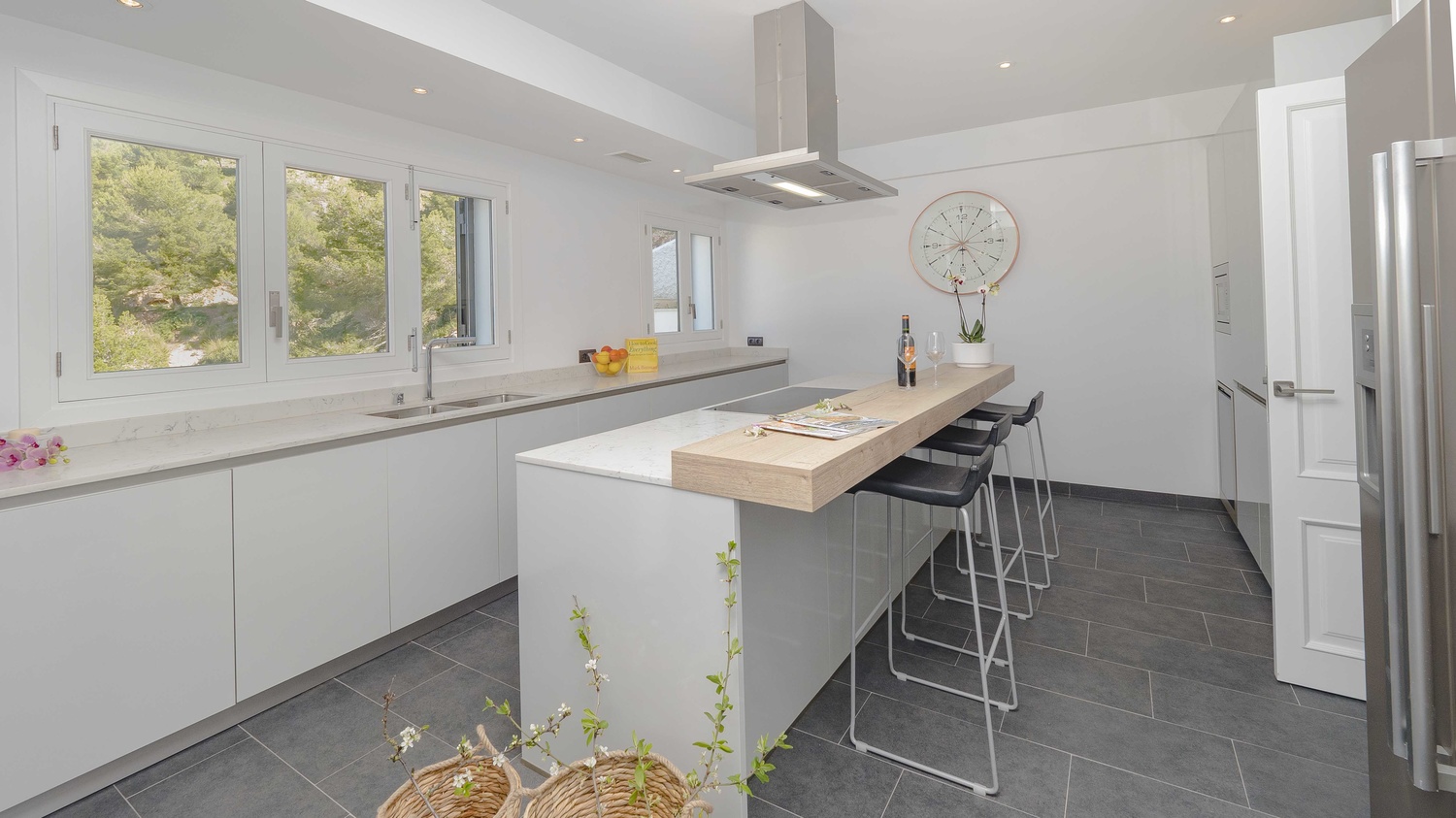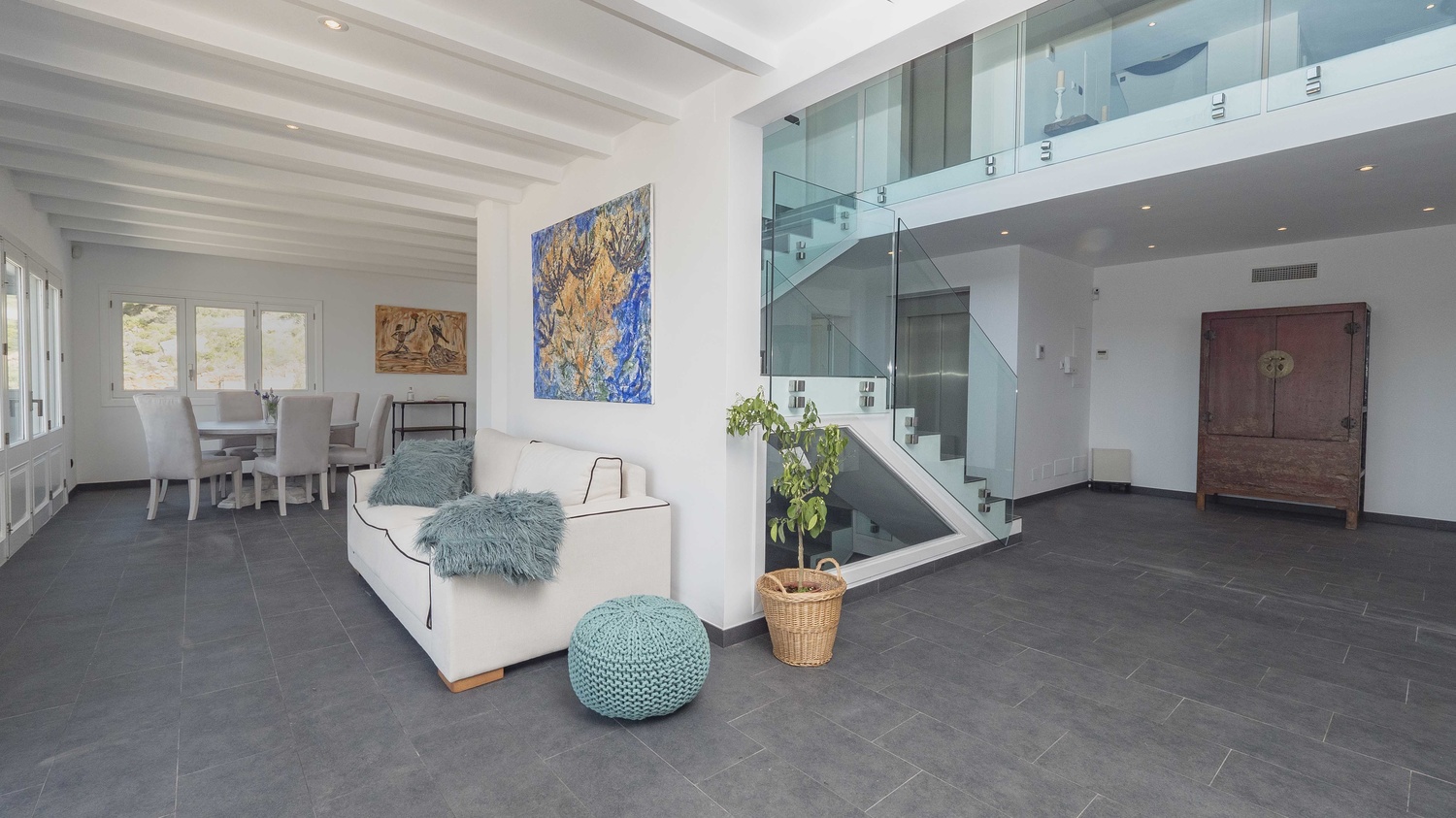 2nd basement: open kitchen with dining area and a large living room with stunning sea views, access to the large terrace with sea views, and 1 guest toilet.