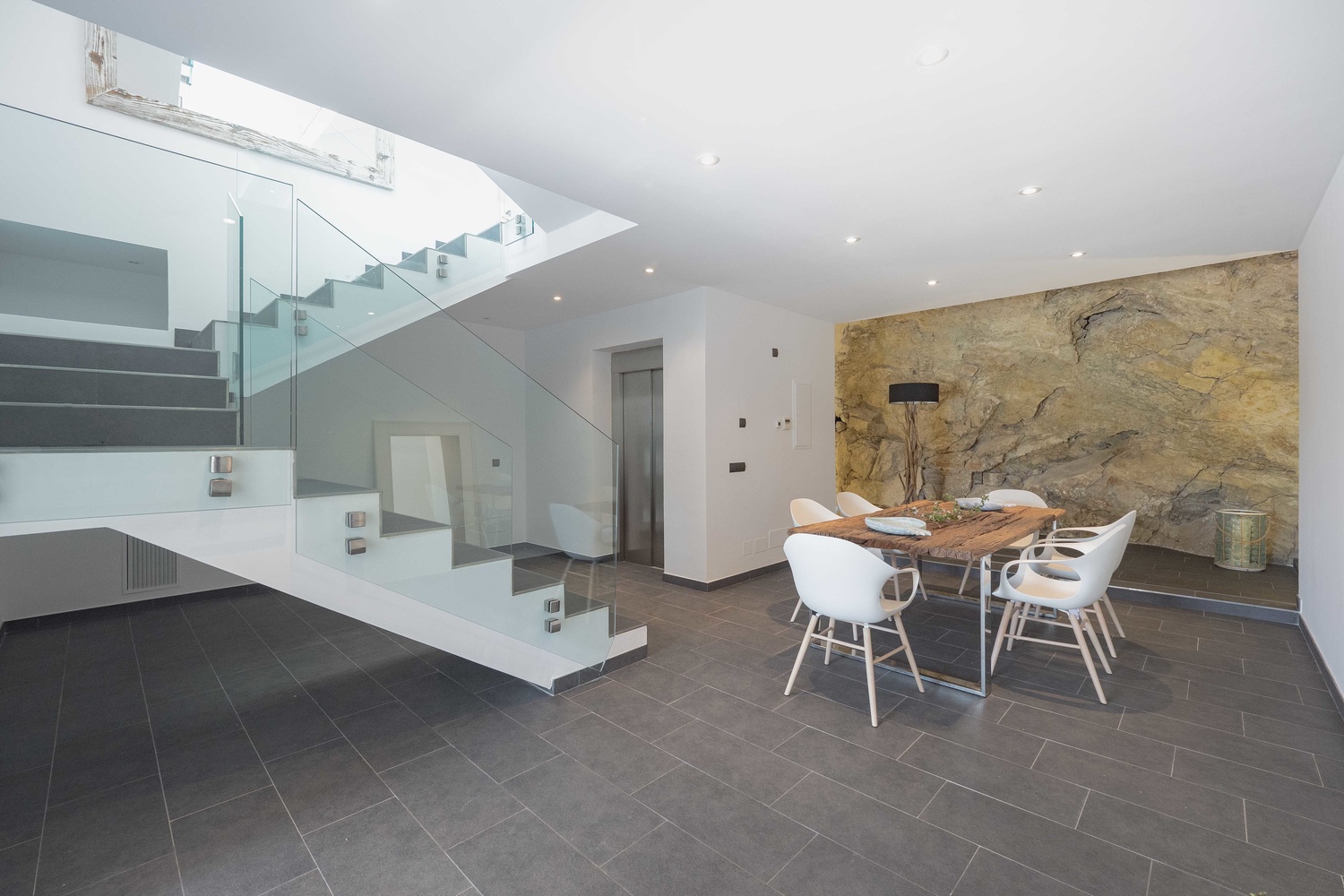 Each level of this modern villa has a terrace that offers plenty of space to enjoy the sun. For maximum comfort, the house has a lift that stops on all four floors.