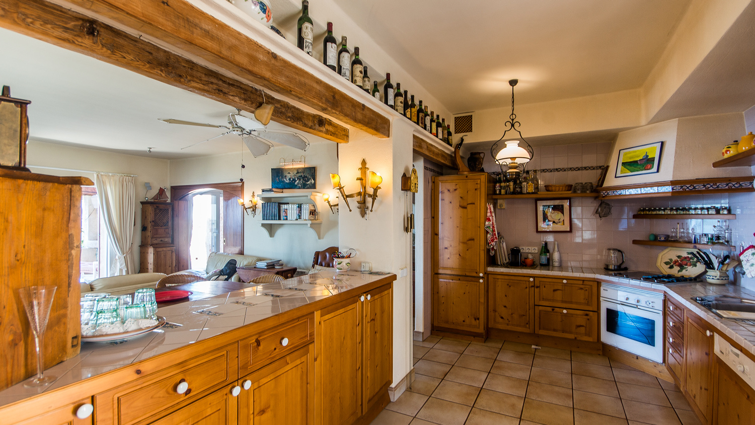 This villa in a beautiful hillside position offers views over the green of the pine trees to the sea. A dreamlike little sandy beach can be reached via a private access to the sea.