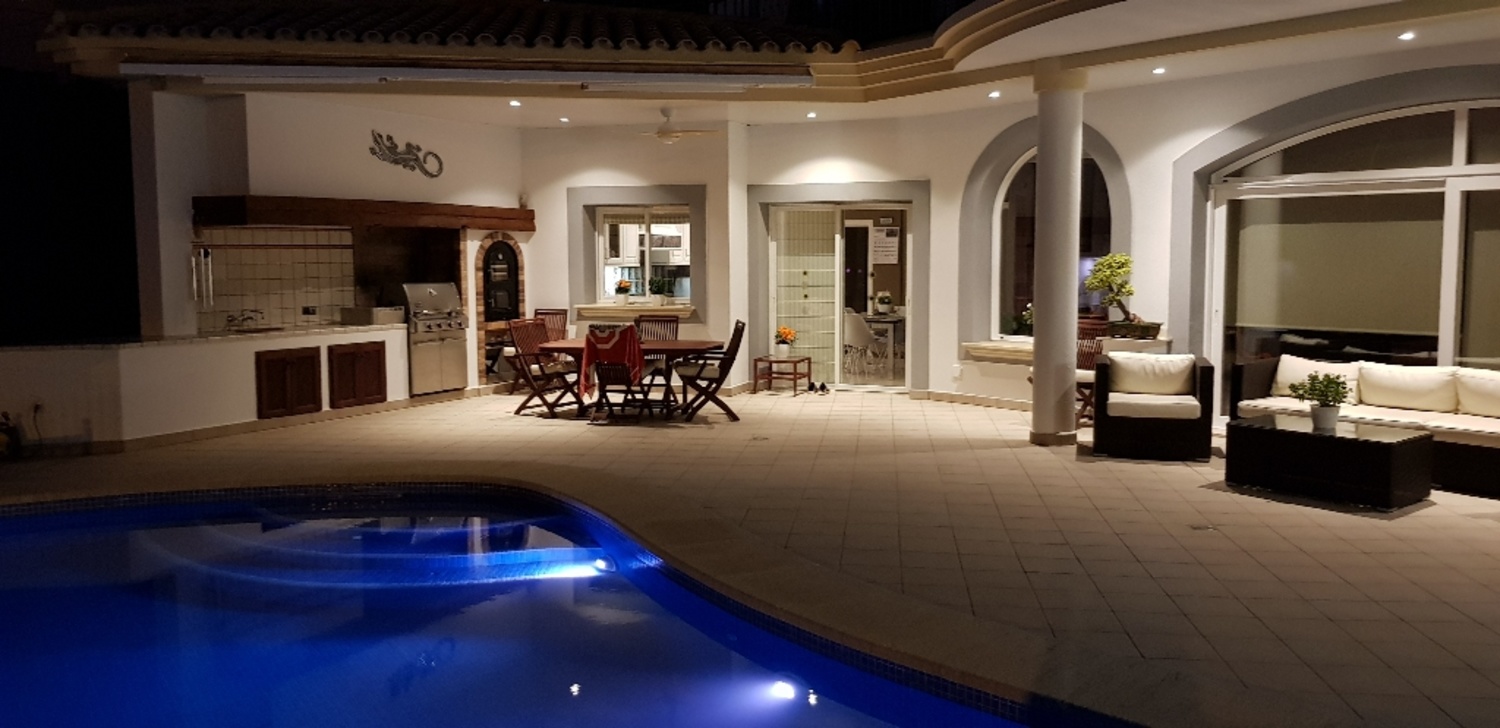 This Mediterranean styled property in Mallorca guarantees a perfect family holiday. Situated in a pleasant neighbourhood and just few minutes away from the new lifestyle harbour Port Adriano (designed by Philippe Starck) and the smaller yacht harbour of Santa Ponsa as well as the golf courses, this property connects at the same time all hotspots of maritime life and golfing. The orientation of the property guarantees 300 wonderful sunny days yearly that you can perfectly enjoy on different spacious terraces or from the pool area. The light-flooded interior of the house has been very tastefully designed and impresses with its open plan dining- and living room and the spacious bedrooms with bathrooms. More features of the property are: garage, BBQ, south west orientation, air condition h/c, fireplace and underfloor heating.
